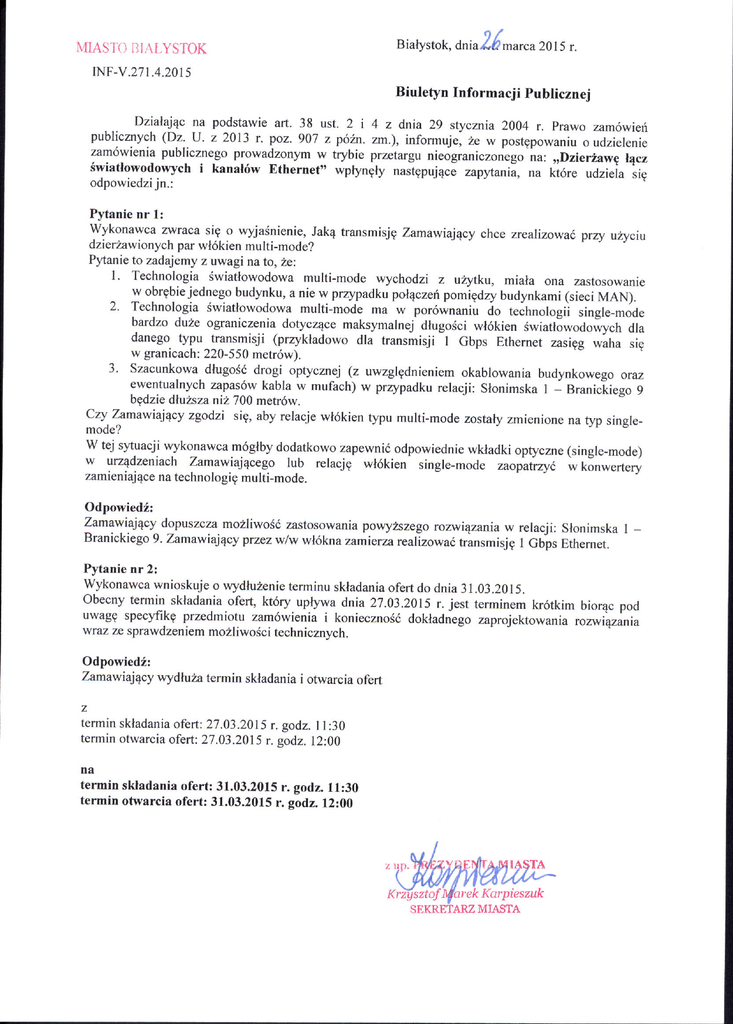 termin otwarcia ofert: 31.03,2015 r. godz. l2:OO