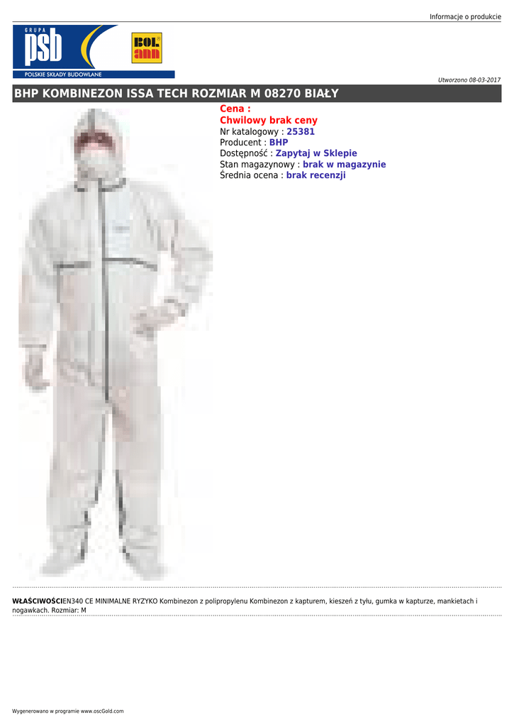 BHP KOMBINEZON ISSA TECH ROZMIAR M 08270 BIAŁY