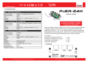 z obu stron wtykiem RJ45. Złącze LAN / PoE OUT 48V oprócz