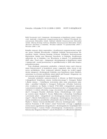 Estetyka i Krytyka 15/16 (2/2008–1/2009) NOTY O KSIĄŻKACH