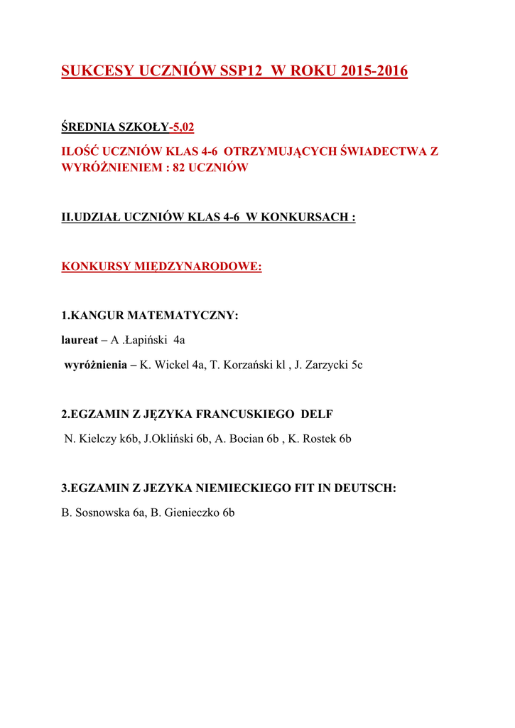 osiągnięcia uczniów ssp 12 w roku 2015-2016