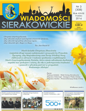 2 3 (308) marzec 2016 Rolnicy się szkolą Pomorski Ośrodek Doradztwa Rolniczego – Biuro Powiatowe w Kartuzach oraz Urząd Gminy w Sierakowicach zorganizowały w dniu 10 marca szkolenie dla rolników. Rolnicy poznali zasady wypełniania wniosków o dopłaty bezpośrednie na działania związane z modernizacją gospodarstw rolnych oraz z programem „Młody rolnik” i innymi. Poszczególne tematy referowali pracownicy Agencji Modernizacji i Restrukturyzacji Rolnictwa. W szkoleniu uczestniczyło około 70 rolników z gminy Sierakowice. Ponadto Kierownik Referatu Ochrony Środowiska, Mariusz Laska, przedstawił wymogi oraz nowe przepisy dotyczące budowy oczyszczalni przydomowych na terenie gminy. Włodzimierz Siemieniuk foto: AK Zapraszamy Alior Bank Sierakowice ul. Lęborska 26 tel. 531 506 785 lub 58 684 62 90 „Wiadomości Sierakowickie” 83-340 Sierakowice, ul. Lęborska 30, tel. 58 681 95 58, e-mail: [email protected] Redakcja czynna od poniedziałku do piątku w godzinach: 7.30-13.30 Redaguje zespół: Maria Karolak, Danuta Pioch, Agnieszka Rybakowska-Król, Mirosław Kuczkowski Opracowanie graficzne, skład i przygotowanie do druku: Reklama4YOU, Sierakowice, ul. Kartuska 35, tel. 665 398 133. Druk: KrisPaul, Gdańsk, ul. Do Studzienki 31 Redakcja zastrzega sobie prawo do skrótów w materiałach niezamówionych oraz w publikowanych listach. Nie bierzemy odpowiedzialności za treść ogłoszeń i reklam. 3 Strażacy podsumowali miniony rok i wybrali nowe władze W tym roku zakończyły się pięcioletnie kadencje zarządów jednostek Ochotniczych Straży Pożarnych. Zebraniem sprawozdawczowyborczym w Tuchlinie, w dniu 23 stycznia, zainaugurowano cykl spotkań podsumowujących działalność poszczególnych jednostek w 2015 roku oraz wybór nowych władz. Na początek trochę danych statystycznych. W ubiegłym roku strażacy w całym powiecie kartuskim interweniowali 2226 razy. Dla porównania w roku 2014 podjęli 1969 interwencji. Strażacy z jednostek OSP gminy Sierakowice wyjeżdżali do zdarzeń 242 razy (w 2014 r. 215 Komisja rewizyjna Zarząd jednostki OSP w Tuchlinie razy) – 51 razy wzywano ich do pożarów, a 188 razy do miejscowych zagrożeń, były też 3 fałszywe alarmy. Oto jak wyglądało to w poszczególnych jednostkach: OSP Sierakowice – 178 zdarzeń, w tym 45 pożarów, 130 zagrożeń miejscowych i 3 fałszywe alarmy; OSP Mojusz – 21 zdarzeń w tym 3 pożary i 18 zagrożeń miejscowych; OSP Gowidlino – 43 interwencje, w tym 11 pożarów i 32 zagrożenia miejscowe; OSP Tuchlino – 21 zdarzeń, w tym 3 pożary i 18 zagrożeń miejscowych; OSP Kamienica Królewska – 14 zdarzeń, w tym 1 pożar i 13 zagrożeń miejscowych. Ochotnicza Straż Pożarna w Sierakowicach zajmuje drugie miejsce w powiecie (po OSP Żukowo) pod względem ilości interwencji, jakie podejmuje w ciągu roku. Straty spowodowane przez pożary, jakie wybuchły na terenie gminy Sierakowice, wyniosły 189 tys. zł, natomiast wartość uratowanego mienia oszacowano na 2.378.000 zł. Warto wspomnieć, że podczas ubiegłorocznej inspekcji gotowości bojowej wszystkie jednostki – uzyskując maksymalną liczbę punktów – otrzymały ocenę bardzo dobrą. 4 3 (308) marzec 2016 Wracając do tematu wyborów władz w jednostkach OSP, na uwagę zasługuje fakt, że w wielu przypadkach druhowie po raz kolejny obdarzyli zaufaniem te same osoby, powierzając im funkcje w zarządzie i komisji rewizyjnej. Jako pierwsi władze jednostki na kolejną kadencję wybrali druhowie z Tuchlina. Na prezesa zarządu ponownie wybrano Kazimierza Kreftę, naczelnikiem został Rafał Migowski, zastępcą naczelnika Jacek Myszk, skarbnikiem Maciej Zaworski, a sekretarzem Zbigniew Migowski. Komisję rewizyjną tworzą: Wojciech Myszk – przewodniczący - oraz Zenon Breza i Robert Zaworski. Jednostka OSP w Tuchlinie liczy 58 ochotników, w tym 17 kobiet. Kolejne zebranie sprawozdawczo-wyborcze odbyło się 30 stycznia w jednostce w Kamienicy Królewskiej. Druhowie wybrali zarząd w składzie: Zbigniew Kostuch – prezes, Arkadiusz Lejk – wiceprezes/naczelnik, Eugeniusz Bigus – skarbnik, Andrzej Marciński – sekretarz, Jan Bronk – kronikarz - oraz Zbigniew Pawelczyk i Adam Maszota. Komisja rewizyjna: Łukasz Lejk – przewodniczący, Sławomir Szynszecki – zastępca przewodniczącego i Małgorzata Bigus. Jednostkę tworzy 43 strażaków-ochotników, w tym 4 kobiety. Zarząd jednostki OSP w Gowidlinie Komisja rewizyjna Jóskowski – skarbnik, Jan Sikora – gospodarz. Skład komisji rewizyjnej: Marek Tryba – przewodniczący, Bogdan Pioch – sekretarz i Marian Korda. Mojuszewską jednostkę tworzy 56 strażaków, w tym 10 kobiet. Zarząd jednostki OSP w Kamienicy Królewskiej Zarząd jednostki OSP w Mojuszu Komisja rewizyjna 6 lutego zarząd i komisję rewizyjną na kolejną kadencję wybrali druhowie z Gowidlina. Skład zarządu przedstawia się następująco: Andrzej Wenta – prezes, Karol Wenta – naczelnik, Henryk Sobisz – zastępca naczelnika, Ryszard Głodowski – skarbnik, Damian Wenta – sekretarz, Wojciech Wenta – gospodarz - i Marek Brzeski. Skład komisji rewizyjnej: Andrzej Choszcz – przewodniczący, Leszek Krefta – sekretarz oraz Mateusz Mielewczyk. Gowidlińska jednostka liczy 43 strażaków, w tym 5 kobiet. Strażacy-ochotnicy z Mojusza wybrali władze jednostki w niedzielę 21 lutego. Skład nowego zarządu: Łucjan Jóskowski – prezes, Weronika Sikora – wiceprezes, Jan Stachnik – naczelnik, Sławomir Joskowski – zastępca naczelnika, Witold Dejk – sekretarz, Jarosław ichtiolog Włodzimierz Siemieniuk Oferujemy: - Zarybianie jezior, stawów (świadectwo zdrowia) oraz oczek wodnych (ryby kolorowe i stawowe) - Projektowanie i budowanie oczek wodnych - Profesjonalne doradztwo - Pisanie operatów rybackich - Zakładanie i serwis akwariów Sierakowice, ul. Kościerska 57 www.zlotaryba.pl tel. 608 283 407 [email protected] 5 Skład komisji rewizyjnej: Karol Zwara – prze