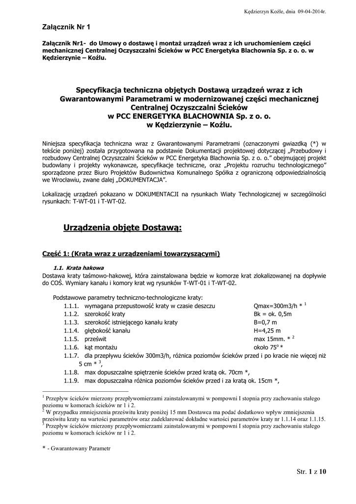 Załącznik nr 1 do umowy - PCC Energetyka Blachownia Sp. z oo