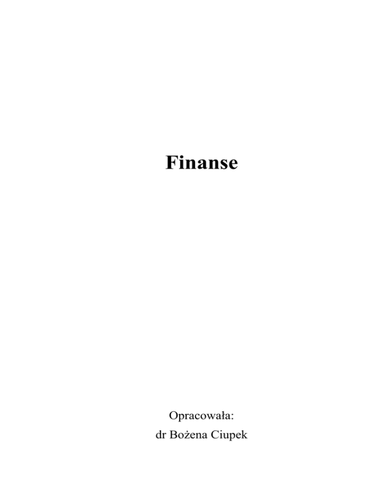 Finanse Opracowała: dr Bożena Ciupek Ogólne informacje o przedmiocie Cel przedmiotu: 1. 2. 3. Zapoznanie słuchaczy z podstawowymi pojęciami z zakresu finansów, umiejscowienie zjawisk finansowych w całokształcie zjawisk ekonomicznych, przedstawienie zasad kreowania pieniądza i jego przepływu w podmiotach finansów. Wprowadzenie do zagadnień związanych z gospodarką finansową banków, instytucji publicznych i ubezpieczycieli. Wyrobienie umiejętności rozpoznawania podstawowych instrumentów finansowych i kategorii finansowych. Stworzenie podstawy do dalszej edukacji finansowej. Ramowy program: Zajęcia dydaktyczne (wykład) – 16 godzin, Samodzielna praca studenta -12 godzin, Kolokwium zaliczeniowe - 2 godziny. 1. Przedmiot i metoda nauki finansów Wprowadzenie podstawowych pojęć z zakresu finansów (finanse, nauka finansów, zjawiska finansowe, system i mechanizm finansowy). Określenie miejsca zjawisk finansowych w gospodarce. Przedstawienie podmiotowej i przedmiotowej klasyfikacji zjawisk finansowych. Charakterystyka współczesnych funkcji finansów. Wskazanie metod nauki finansów (uniwersalne metody poznania naukowego, metody statyczne i dynamiczne, znaczenie eksperymentu w nauce finansów) 80 2. Miejsce finansów i systematyka dyscyplin finansowych Klasyfikacja i charakterystyka dyscyplin finansowych, interdyscyplinarny charakter zjawisk finansowych, finanse a nauki ekonomiczne, matematyka, socjologia, psychologia i etyka. 3. System finansowy państwa Struktura systemu finansowego (instrumenty finansowe i ich rodzaje, rynki i instytucje finansowe, reguły działania systemu finansowego. Funkcje systemu finansowego. Modele systemu finansowego. Kategorie finansowe (przychodowe, dochodowe, kosztowe, podatkowe, dłużne. Równowaga systemu finansowego. Odchylenia od stanu równowagi. 4. Pieniądz jako podstawowy instrument finansowy Istota cechy i formy współczesnego pieniądza. Zasady kreacji pieniądza. Instrumenty polityki pieniężnej. Teorie popytu na pieniądz (ilościowa, preferencji płynności Keynesa, monetarystyczna). Strefa euro. 5. System bankowy Istota systemu bankowego w gospodarce rynkowej. Zadania i funkcje Banku Centralnego Rola Rady Polityki Pieniężnej. Zadania Nadzoru Bankowego. Czynności banku komercyjnego (aktywne, pasywne, pośredniczące). 6. System finansów publicznych Własność a przepływy pieniężne. Pojęcie i zasady finansowania dobra społecznego i dobra publicznego. Elementy systemu finansów publicznych. Struktura organizacyjna budżetu. Struktura ekonomiczna budżetu.Budżet a Skarb Państwa. 81 7. System finansów ubezpieczeń Istota ubezpieczenia. Funkcje i rodzaje ubezpieczeń. Gospodarka finansowa firm ubezpieczeniowych. Fundusze ubezpieczeniowe. Reasekuracja 8. Finanse podmiotów gospodarczych Gospodarka finansowa przedsiębiorstwa. Majątek i kapitały w przedsiębiorstwie. Zysk i utrzymanie płynności jako cele finansowe działalności przedsiębiorstwa. Możliwości pozyskania kapitału. Literatura: Podstawowa: System finansowy w Polsce, ( red.) B. Pietrzak, Z. Polański, B. Woźniak, PWN, Warszawa 2003 2. Owsiak S., Podstawy nauki finansów, PWE, Warszawa 2002 3. Finanse, (red.) Z. Brodecki, LexisNexis, Warszawa 2004 1. Zalecana: 1. 2. 3. 4. 5. 82 Oręziak L.,Finanse Unii Europejskiej, PWN, Warszawa 2004 Finanse (red) J. Ostaszewski, Difin Warszawa 2003 Szponar P, Polityka pieniężna. Cele i warunki skuteczności, PWE, Warszawa 2000 Kaźmierczak A., Polityka pieniężna w gospodarce rynkowej (wyd.2), PWN, Warszawa 2003 Majchrzycka-Guzowska A, Finanse i prawo finansowe, PWN, Warszawa 2002 Problematyka zajęć dydaktycznych Wykład 1: Wybrane zagadnienia ogólne z zakresu finansów Czas realizacji: 2 godziny Tezy: 1. 2. 3. 4. 5. Istota finansów i przedmiot nauki finansów. Miejsce finansów w gospodarce i nauce ekonomii. Sfery finansów - finanse publiczne i finanse prywatne. Zjawiska finansowe i ich klasyfikacja. Istota systemu i mechanizmu finansowego. słowa klucze: finanse, gospodarka finansowa, polityka finansowa, system finansowy, mechanizm finansowy. Pytania: 1. Co stanowi istotę zjawisk finansowych? 2. Jakie miejsce zajmują finanse w systemie gospodarczym? 3. Na czym polega gospodarka finansowa, a co jest istotą polityki finansowej? 4. Na czym polega różnica między finansami publicznymi a finansami prywatnymi? 5. Jak można klasyfikować zjawiska finansowe? 6. Czym charakteryzują się zjawiska finansowe o charakterze materialnym? 7. Czym charakteryzują się zjawiska finansowe o charakterze redystrybucyjnym? 8. Czym charakteryzują się zjawiska finansowe o charakterze kredytowym? 9. Co jest istotą systemu finansowego i jakie są jego ogniwa? 10. Dlaczego nie ma systemu finansów gospodarstw domowych? 83 11. Co stanowi istotę mechanizmu finansowego? Wykład 2: System finansowy państwa Czas realizacji: 2godziny Tezy: 1. Elementy systemu finansowego. 1.1. Instrumenty finansowe. 1.2. Rynki finansowe. 1.3. Instytucje finansowe. 1.4. Zasady funkcjonowania (reguły gry). 2. Funkcje systemu finansowego. 3. Modele systemu finansowego. słowa klucze: Instrumenty finansowe, rynki finansowe, instytucje finansowe, model bankowo zorientowany, model oparty na funkcjonowaniu rynku papierów wartościowych. Pytania: 1. Jakie miejsce zajmuje system finansowy w systemie społecznym i gospodarczym państwa? 2. Jakie elementy tworzą system finansowy państwa? 3. Co stanowi istotę instrumentów finansowych i jak można je klasyfikować? 4. Co stanowi istotę rynku finansowego i jakie można wyróżnić jego rodzaje? 5. Co stanowi istotę instytucji finansowej i jak można je klasyfikować? 6. Co to są sformalizowane „reguły gry” i jakie są ich przykłady? 84 7. Co to są niesformalizowane „reguły gry” i jakie są ich przykłady? 8. Jakie są funkcje systemu finansowego i czym się charakteryzują? 9. Jakie są cechy systemu finansowego bankowo zorientowanego? 10. Jakie są cechy systemu finansowego opartego