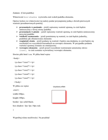 inset, to cień zostanie wyświetlony wewnątrz elementu.