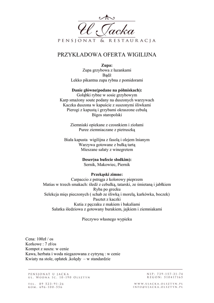 PRZYKŁADOWA OFERTA WIGILIJNA