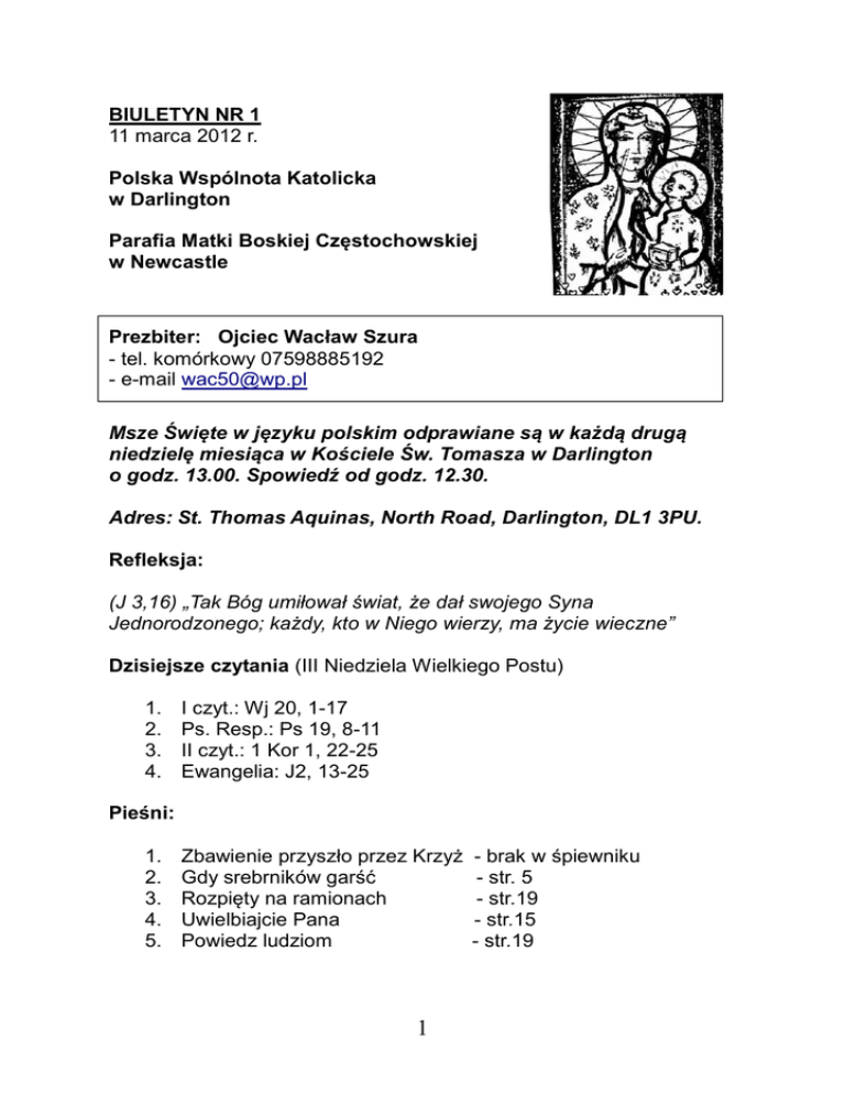 BIULETYN NR 1 11 marca 2012 r. Polska Wspólnota Katolicka w