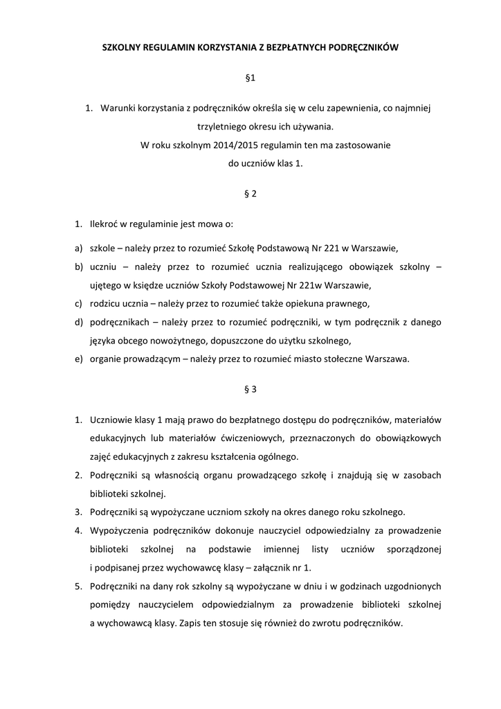 szkolny regulamin korzystania z bezpłatnych podręczników