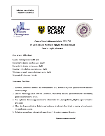zDolny Ślązak Gimnazjalista 2012/13 VI Dolnośląski Konkurs