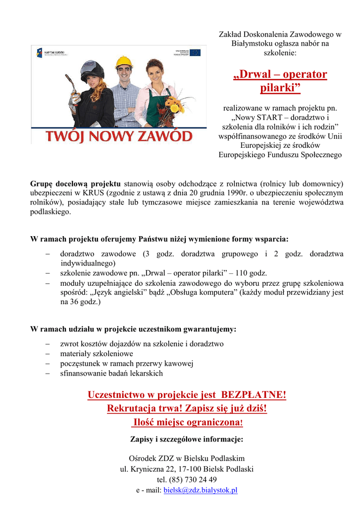 Uprzejmie informuję, że rozpoczynamy następujące kursy: DRWAL