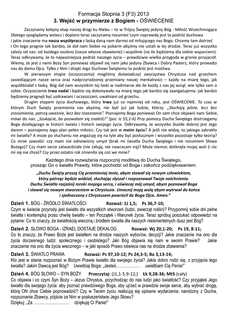 Formacja Stopnia 3 (F3) 2013 3. Wejść w przymierze z Bogiem