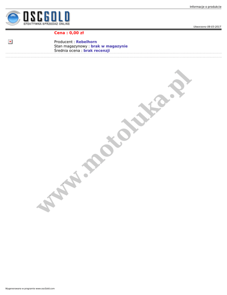 Informacje o produkcie Utworzono 08-03-2017 Cena : 0,00 zł w w w .m ot ol uk a. pl Producent : Rebelhorn Stan magazynowy : brak w magazynie Średnia ocena : brak recenzji Wygenerowano w programie www.oscGold.com