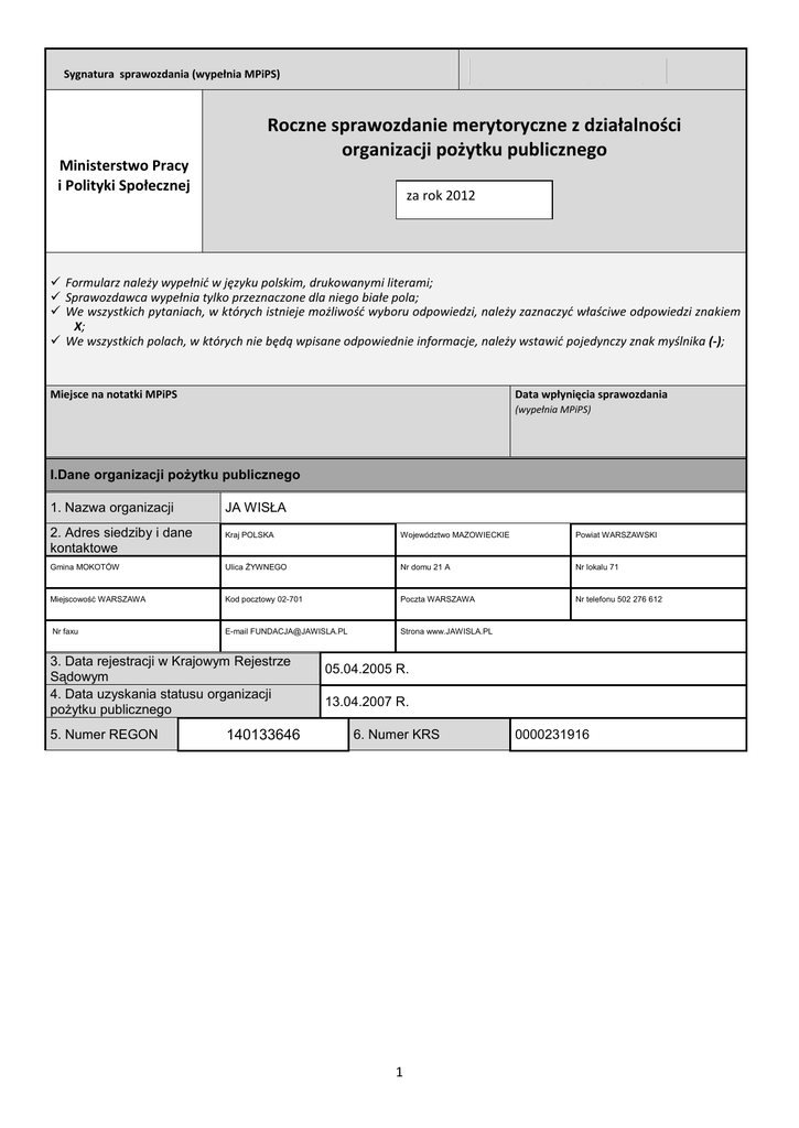 Sprawozdanie 2012 - Fundacja Ja Wisła
