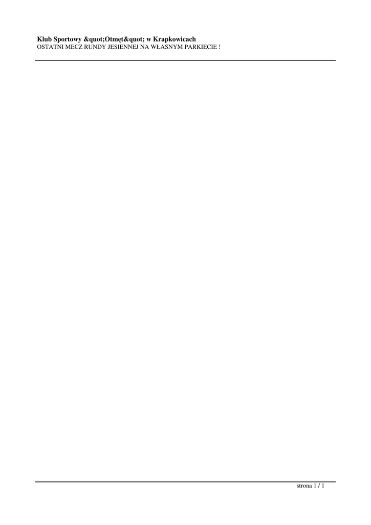 Klub Sportowy "Otmęt" w Krapkowicach OSTATNI MECZ RUNDY JESIENNEJ NA WŁASNYM PARKIECIE ! strona 1 / 1