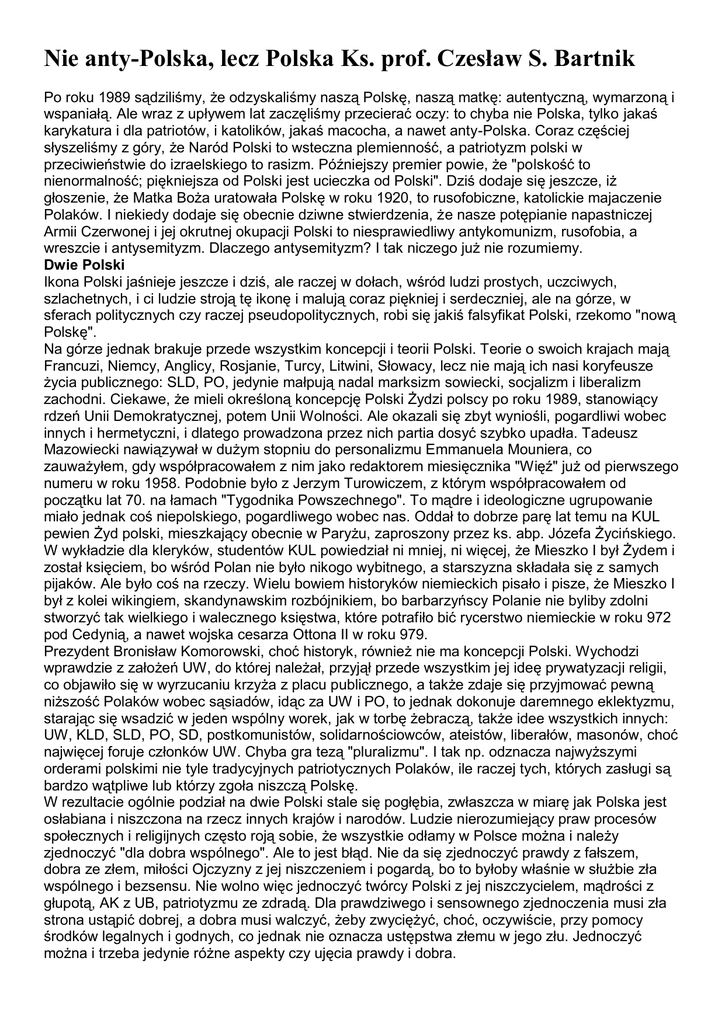 Nie anty-Polska, lecz Polska Ks. prof. Czesław S. Bartnik