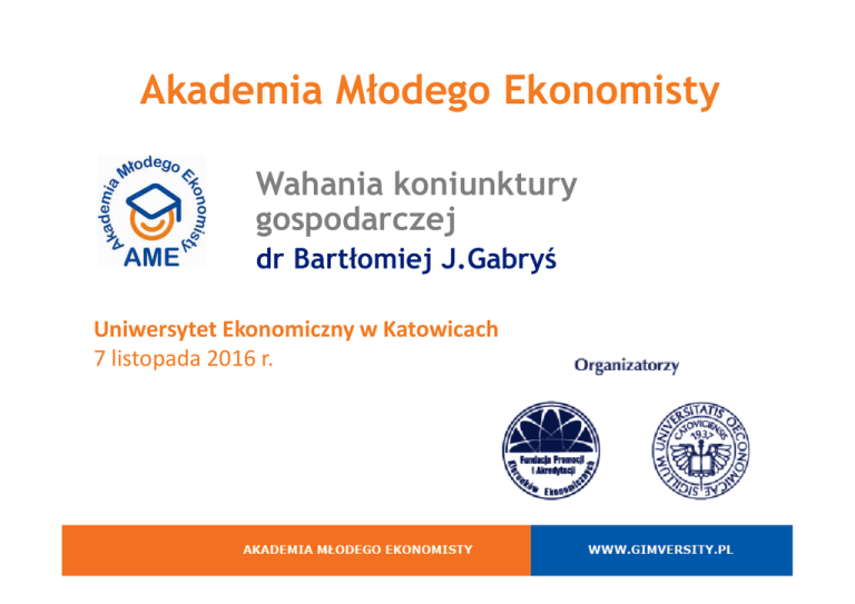 Akademia Młodego Ekonomisty Wahania koniunktury gospodarczej dr Bartłomiej J.Gabryś Uniwersytet Ekonomiczny w Katowicach 7 listopada 2016 r. Kryzys ? I co dalej…. KRYZYS Trudna sytuacja, Punkt zwrotny Moment rozstrzygający Etap po którym następuje zmiana Zielona Wyspa Przyczyny: Makroekonomiczne: Słabość gospodarki danego kraj, regionu, Fiskalizm, Zmiany technologiczne, Zmiany w konsumpcji, Zmiany na rynku – deregulacja, ograniczenia Przyczyny kryzysu w polskich organizacjach: Zewnętrzne: Recesja, Bezrobocie, Kursy walut, Inflacja, Cło, podatki Wewnętrzne: Błędne zarządzanie, Brak kapitału, Niska efektywność, Brak strategii rozwoju, Błędna polityka cenowa John Maynard Keynes Państwo powinno być regulatorem rynku - jego interwencjonizm powinien być kierowany na dziedziny, w których nie angażują się prywatne przedsiębiorstwa, Najważniejszą rolę w gospodarce odgrywają inwestycje, których wielkość zależy między innymi od stopy procentowej i optymizmu przedsiębiorców; Jeśli inwestor spodziewa się wyższych zysków, to inwestuje. Jeżeli nie robi tego w ogóle lub w zbyt małym zakresie, otwiera się tak zwana luka inwestycyjna, Zwiększanie oszczędności prowadzi do zmniejszenia popytu, który ma znaczenie kluczowe Gospodarka osiąga pomyślną koniunkturę tylko wtedy jeśli konsumenci wydają większość dochodu na dobra i usługi, a przedsiębiorstwa inwestują, Wydatki konsumpcyjne zależą od dochodów i od skłonności do konsumpcji, W wyniku zwiększania oszczędności, czyli zmniejszania konsumpcji, następuje ograniczenie produkcji, zmniejszenie płac i likwidacja miejsc pracy i w konsekwencji cała gospodarka wchodzi w fazę kryzysu, Gospodarka nie wychodzi z kryzysu samoczynnie, Pobudzanie gospodarki następuje przez uruchamianie wydatków państwa, które obejmują prace interwencyjne, budowę dróg, kanałów, lotnisk i domów mieszkalnych. Milton Friedman Najważniejszą teorią pozostawioną przez Friedmana jest monetaryzm - szkoła ekonomicznego myślenia, sprzeciwiająca się myśli keynesowskiej. Friedman zaprezentował tezę, że polityka pieniężna musi być realizowana nie poprzez stopy procentowe, jak postulował Keynes, lecz poprzez masę pieniądza. Koniunktura, zdaniem ekonomisty ulega wzmocnieniu nie wtedy, gdy państwo zwiększa wydatki, lecz gdy umiarkowanie podnosi ilość pieniądza (na tyle umiarkowanie, by nie dopuścić do wzrostu inflacji). Według Friedmana ilość pieniądza razy prędkość daje produkt społeczny. A ponieważ prędkość obiegu pieniądza jest względnie stała, gdyż gospodarstwa domowe nie zmieniają gwałtownie swych zachowań, więc zwiększanie ilości pieniądza podnosi produkt społeczny. Zaleca powściągnięcie zapędów państwa, a mianowicie: prywatyzację, deregulację, cięcie wydatków z budżetu na wydatki socjalne, opiekę zdrowotną i oświatę. Uważał, że im mniejszy wpływ państwa, tym lepiej. Ponadto proponował drastyczne zmiany w systemie podatkowym zmniejszenie najwyższych stawek oraz likwidację niezliczonych wyjątków, odpisów i furtek w prawie podatkowym. Ekonomista ponad wszystko wynosił osobistą wolność. Z tego powodu występował o zezwolenie na narkotyki, odrzucał obowiązkową służbę wojskową, chciał likwidacji prawa jazdy, licencji lekarskich, państwowej opieki w starości czy budownictwa socjalnego. Konsekwentnie był przeciwny określanej płacy minimalnej, natomiast domagał się zezwolenia na aborcję i prostytucję. Zadanie: Czy wszystko można sprywatyzować ? Edukacja, wojsko, policja, dostęp do wody, dostęp do powietrza, dostęp do lasu….. Dziękuję [email protected]