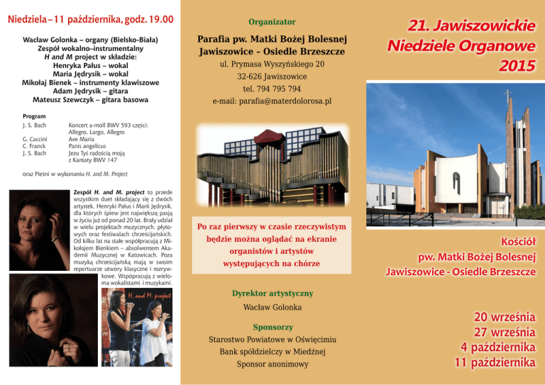21. Jawiszowickie Niedziele Organowe 2015