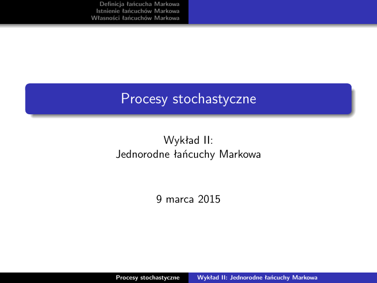 Wykład II: Jednorodne łańcuchy Markowa