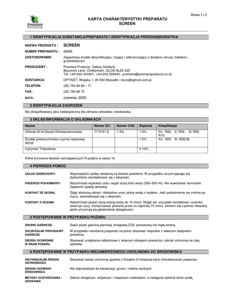 karta charakterystyki preparatu screen screen