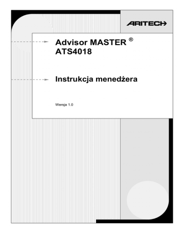 Advisor MASTER ® ATS4018 Instrukcja menedżera Wersja 1.0 Aritech jest częścią firmą interlogiX Company © interlogix B.V. 2000. Wszelkie prawa zastrzeżone. Żadna część niniejszej publikacji nie może być kopiowana, przekazywana, przechowywana w systemach umożliwiających dostęp ani rozpowszechniana w jakikolwiek sposób — metodami elektronicznymi, poprzez fotokopiowanie, nagrywanie lub inaczej — bez uprzedniej pisemnej zgody firmy interlogiX B.V. Firma interlogiX B.V. zastrzega sobie prawo wprowadzania zmian bez uprzedzenia. SPIS TREŚCI Zapraszamy 3 Manipulator Advisor MASTER Manipulator Wyświetlacz LCD Diody LED Identyfikacja użytkownika 4 4 5 5 7 Przymus 9 Opcja otwierania drzwi 10 Rozbrajanie systemu 13 Linie aktywne (podczas zazbrajania) 15 Typy alarmów Alarm lokalny Alarm 16 Alarm systemowy Co należy robić w razie wystąpienia alarmu Resetowanie alarmu lokalnego Resetowanie linii w alarmie Dodatkowe informacje na temat alarmów Wyświetlanie zaistniałych zdarzeń alarmów 16 16 16 17 17 18 19 20 Menu centrali Advisor MASTER 21 1. Status centrali 23 2. Linie aktywne 24 3. Linie w alarmie 25 4. Linie zawieszone 26 5. Historia 27 6. Raport z testowania 29 7. Menu serwisowania 32 8. Liczniki filmu 34 9. Lista nazw linii 35 10. Zawieszanie linii 36 11. Odwieszanie linii 37 12. Test linii 38 13. Rozpocznij automatyczny test rozbrajania 39 14. Programuj użytkowników 41 15. Godzina i data 49 16. Zawieszanie/odwieszanie ZAZ/MZD 52 17. Włącz/wyłącz serwis 53 18. Resetuj kamery 54 20. Grupy drzwi i pięter 55 21. Święta 57 22. Otwórz drzwi 58 Instrukcja menedżera ATS4018 1 23. Otwórz zamek, zamknij zamek, wyłącz i włącz 59 24. Drukuj historię 60 Tabele programowania 61 Tabela użytkowników — opcja menu 14 62 Tabela grup drzwi — opcja menu 20 63 Tabela grup pięter — opcja menu 20 64 Tabela świąt — opcja menu 20 65 Tabela grup alarmowych; szczegóły będą podane przez instalatora 66 Tabela okien czasowych; szczegóły będą podane przez instalatora 67 Słownik 68 Indeks 71 2 Instrukcja menedżera ATS4018 ZAPRASZAMY W niniejszej instrukcji wyjaśniono sposób eksploatacji systemu Advisor MASTER. Informacje te są przeznaczone dla osób zarządzających tym systemem. Dostępna jest także krótsza instrukcja, w której wyjaśniono, jak używać systemu na co dzień. Centrala Advisor MASTER łączy w sobie wyrafinowany projekt z uniwersalnością, dzięki czemu urządzenie to jest liderem w swej dziedzinie. Jak ten system został zaprogramowany? System został zaprogramowany z myślą o zaspokojeniu potrzeb użytkownika. Jednak niektóre funkcje opisane w tej instrukcji mogą nie dotyczyć konkretnego systemu. System może także mieć dodatkowe funkcje, które są szczegółowo omówione w oddzielnej instrukcji dołączonej do tego urządzenia. Zależnie od sposobu zaprogramowania systemu, niektóre jego funkcje mogą być dostępne tylko dla niektórych użytkowników. W niniejszej instrukcji szczegółowo omówiono wszystkie warianty procedur, włącznie z różnymi reakcjami systemu Advisor MASTER. Jednak należy zauważyć, że procedury i reakcje urządzenia Advisor MASTER są spójne w jednym systemie. Na przykład, jeśli w jednej funkcji lista jest wyświetlana w konkretny sposób, we wszystkich innych funkcjach lista będzie prezentowana w taki sam sposób. Wyświetlany tekst Terminologia używana do opisu różnych części chronionej nieruchomości lub systemu bezpieczeństwa została zaprogramowana specjalnie dla konkretnego zastosowania. Testowanie systemu Jest sprawą bardzo ważną, aby system był regularnie testowany. Ma to na celu sprawdzenie, czy wszystkie zainstalowane urządzenia działają prawidłowo. Instrukcja menedżera ATS4018 3 MANIPULATOR ADVISOR MASTER Rysunek 1: Manipulator Manipulator ➀ ➁ 0–9 Klawisze używane do podawania informacji alfanumerycznych. ON Klawisz używany po podaniu kodu PIN do poinstruowania systemu, że chcesz zazbroić obszar (obszary). ➂ OFF (niektóre stacje zazbrajania zamiast klawisza ON mogą mieć klawisz #) Klawisz używany po podaniu kodu PIN do poinstruowania systemu, że chcesz rozbroić obszar (obszary). (niektóre stacje zazbrajania zamiast klawisza OFF mogą mieć klawisz *) ➃ ENTER • Klawisz używany, kiedy podane informacje mają być przetworzone (podobnie jak klawisz Enter w komputerze). • Służy też do przewijanie menu do przodu. (niektóre stacje zazbrajania zamiast klawisza ENTER mogą mieć klawisz #) ➄ MENU* • Służy do wyświetlanie monitu o zalogowanie w menu. • Służy do cofania w celu korygowania błędów. • Służy do przewijanie menu do tyłu. (niektóre stacje zazbrajania mogą mieć tylko klawisz * bez słowa menu) ➁ NEXT • Służy do wyświetlanie następnych elementów na liście menu. • Służy do aktualizacji wyświetlanych informacji. (dostępny tylko w niektórych stacjach zazbrajania) ➆ [CLEAR] Służy do kończenia bieżącej funkcji lub operacji i powrotu do sterowania alarmami. (dostępny tylko w niektórych stacjach zazbrajania) ➇ ➈ 4 Wyświetlacz LCD Używany do wyświetlania komunikatów. Diody LED Używane do wyświetlania statusu obszarów. Instrukcja menedżera ATS4018 Wyświetlacz LCD Komunikaty są wyświetlane na wyświetlaczu ciekłokrystalicznym (LCD) na manipulatorze. Komunikaty zawierają wskazówki dotyczące funkcji centrali Advisor MASTER SYSTEM, takich jak identyfikacja problemów, procedury niezbędne do rozwiązywania problemów, funkcji programowania i innych opcji menu. Na wyświetlaczu mogą być także wyświetlane informacje podawane za pomocą klawiatury. W pierwszym wierszu wyświetlacza pojawiają się informacje systemowe. Kiedy zachodzi potrzeba wyświetlenia większej liczby znaków, informacje te są przewijane zależnie od typu stacji zazbrajania. W drugim wierszu wyświetlacza wyświetlane są instrukcje i znaki wprowadzane za pomocą klawiatury. Nie ma alarmów w tym obszarze Kod: 