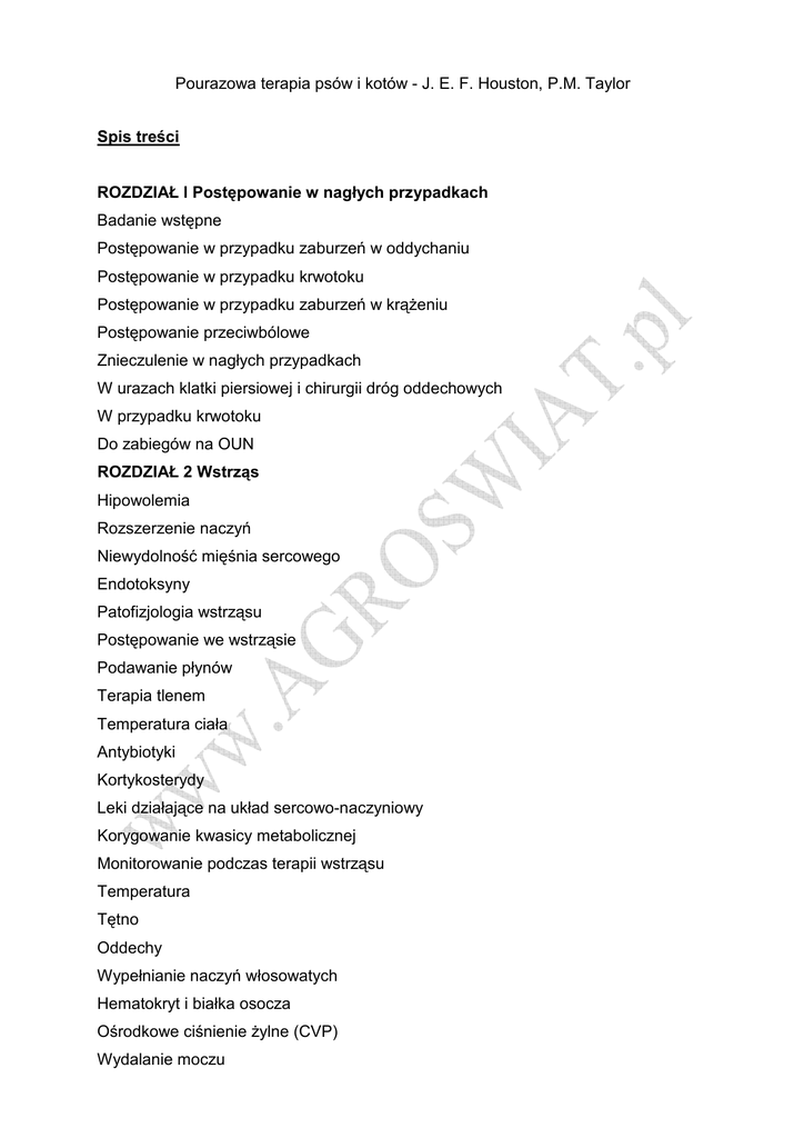 Pourazowa terapia psów i kotów - J. E. F. Houston, P.M. Taylor Spis