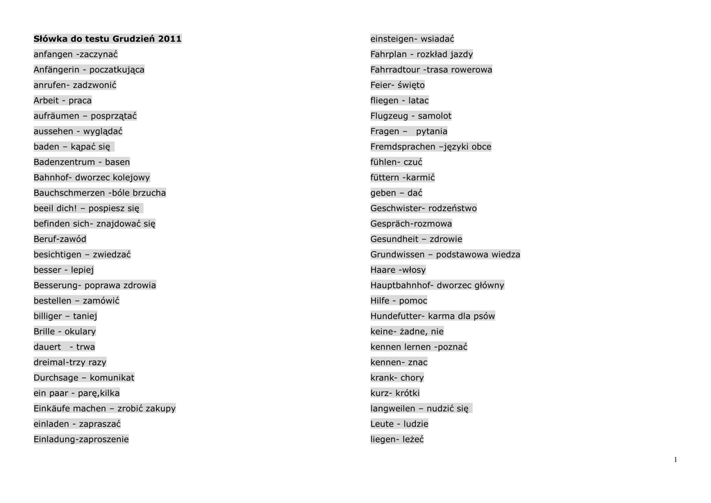 słówka do egzaminu grudzien 2011