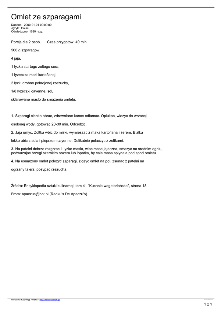 Omlet ze szparagami - Wirtualna Kuchnia Polska