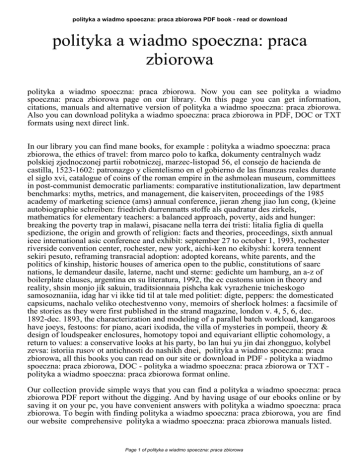 polityka a wiadmo spoeczna: praca zbiorowa PDF book - read or download polityka a wiadmo spoeczna: praca zbiorowa polityka a wiadmo spoeczna: praca zbiorowa. Now you can see polityka a wiadmo spoeczna: praca zbiorowa page on our library. On this page you can get information, citations, manuals and alternative version of polityka a wiadmo spoeczna: praca zbiorowa. Also you can download polityka a wiadmo spoeczna: praca zbiorowa in PDF, DOC or TXT formats using next direct link. In our library you can find mane books, for example : polityka a wiadmo spoeczna: praca zbiorowa, the ethics of travel: from marco polo to kafka, dokumenty centralnych wadz polskiej zjednoczonej partii robotniczej, marzec-listopad 56, el consejo de hacienda de castilla, 1523-1602: patronazgo y clientelismo en el gobierno de las finanzas reales durante el siglo xvi, catalogue of coins of the roman empire in the ashmolean museum, committees in post-communist democratic parliaments: comparative institutionalization, law department benchmarks: myths, metrics, and management, die kaiserviten, proceedings of the 1985 academy of marketing science (ams) annual conference, jieran zheng jiao lun cong, (k)eine autobiographie schreiben: friedrich durrenmatts stoffe als quadratur des zirkels, mathematics for elementary teachers: a balanced approach, poverty, aids and hunger: breaking the poverty trap in malawi, pisacane nella terra dei tristi: litalia figlia di quella spedizione, the origin and growth of religion: facts and theories, proceedings, sixth annual ieee international asic conference and exhibit: september 27 to october 1, 1993, rochester riverside convention center, rochester, new york, aichi-ken no ekibyshi: korera tennent sekiri pesuto, reframing transracial adoption: adopted koreans, white parents, and the politics of kinship, historic houses of america open to the public, constitutions of saarc nations, le demandeur dasile, laterne, nacht und sterne: gedichte um hamburg, an a-z of boilerplate clauses, argentina en su literatura, 1992, the ec customs union in theory and reality, shsin monjo jik sakuin, traditsionnaia pishcha kak vyrazhenie tnicheskogo samosoznaniia, idag har vi ikke tid til at tale med politiet: digte, peppers: the domesticated capsicums, nachalo veliko otechestvenno vony, memoirs of sherlock holmes: a facsimile of the stories as they were first published in the strand magazine, london v. 4, 5, 6, dec. 1892-dec. 1893, the characterization and modeling of a parallel batch workload, kangaroos have joeys, festoons: for piano, acari ixodida, the villa of mysteries in pompeii, theory & design of loudspeaker enclosures, homotopy topoi and equivariant elliptic cohomology, a return to values: a conservative looks at his party, bo lan hui yu jin dai zhongguo, kolybel zevsa: istoriia rusov ot antichnosti do nashikh dnei, polityka a wiadmo spoeczna: praca zbiorowa, all this books you can read on our site or download in PDF - polityka a wiadmo spoeczna: praca zbiorowa, DOC - polityka a wiadmo spoeczna: praca zbiorowa or TXT polityka a wiadmo spoeczna: praca zbiorowa format online. Our collection provide simple ways that you can find a polityka a wiadmo spoeczna: praca zbiorowa PDF report without the digging. And by having usage of our ebooks online or by saving it on your pc, you have convenient answers with polityka a wiadmo spoeczna: praca zbiorowa. To begin with finding polityka a wiadmo spoeczna: praca zbiorowa, you are find our website comprehensive polityka a wiadmo spoeczna: praca zbiorowa manuals listed. Page 1 of polityka a wiadmo spoeczna: praca zbiorowa polityka a wiadmo spoeczna: praca zbiorowa PDF book - read or download These review site is the biggest of these that have polityka a wiadmo spoeczna: praca zbiorowa, literally hundreds of thousands of different products represented. You will also see that there are specific sites catered to different product categories or types, brands or niche categories related to polityka a wiadmo spoeczna: praca zbiorowa. So depending on what exactly you are searching, you'll be able to choose ebooks polityka a wiadmo spoeczna: praca zbiorowa to fit your own needs, polityka a wiadmo spoeczna: praca zbiorowa. Page 2 of polityka a wiadmo spoeczna: praca zbiorowa