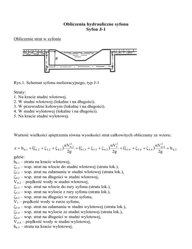 Obliczenia hydrauliczne syfonu Syfon J-1