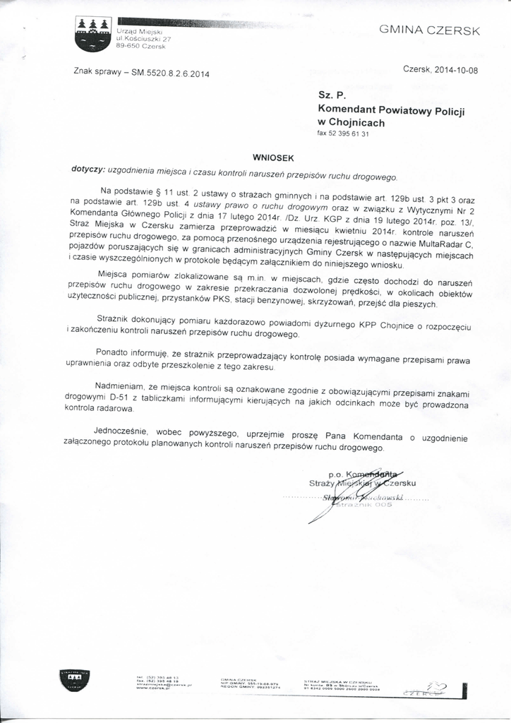 GMINA CZERSK Sz. P. Komendant Powiatowy Poiicji w Chojnicach