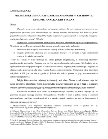 janusz balicki przesłanki demograficzne islamofobii w zachodniej