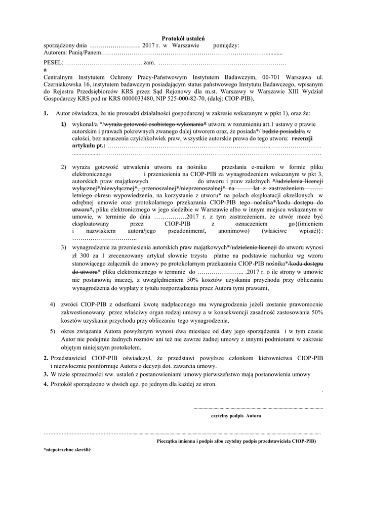 i przeniesienia na CIOP-PIB za wynagrodzeniem wskazanym w pkt 3,
