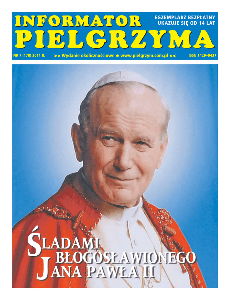 EGZEMPLARZ BEZPŁATNY UK AZUJE SIĘ OD 14 LAT NR 7 (178) 2011 R. Ś J >> Wydanie okolicznościowe www.pielgrzym.com.pl << ISSN 1429–9437 LADAMI BŁOGOSŁAWIONEGO ANA PAWŁA II 2 dwiedził wszystkie zakątki Polski. Z każdą wyprawą wzrastał Jego zachwyt dla piękna ojczyzny. Obszar Polski, szczególnie południowej i północnej, zaznaczony jest gęsto siatką wędrówek Karola Wojtyły. Miejsca, które lubił i gdzie najlepiej wypoczywał oznaczono jako Papieskie Szlaki. W ten sposób spełniło się pragnienie Ojca Świętego: „...dobrze by było umieścić w mojej biografii trasy, wszystkie trasy na których byłem, żebym tak był wrośnięty w polską ziemię”. „Wędruję poprzez polską ziemię, od Bałtyku, przez Wielkopolskę, Mazowsze, Warmię i Mazury, kolejne ziemie wschodnie od białostockiej aż do zamojskiej... na zachód i na wschód od Sanu, wzdłuż górskich łańcuchów Bieszczad ku południowi, wzdłuż rzecznych dolin w stronę Wisły ku północy... Tutaj z wyjątkową mocą zdaje się przemawiać błękit nieba, zieleń lasów i pól, srebro jezior i rzek” – wspominał Jan Paweł II. O Informator Pielgrzyma Szlaki papieskie Gdzie szukać Papieskich Szlaków? Beskid Wyspowy (szlak składa się z dwóch części): – Zagórzańskiej – rozpoczyna się w Rabce Zdroju i biegnie przez Zaryte – Luboń Wielki – Przełęcz Glisne – Szczebel (tu dołącza Szlak Papieski z Lubnia) – Kasinkę Małą – Lubogoszcz – Kasinę Wielką – Ośrodek Rekolekcyjno–Rekreacyjny na Śnieżnicy – Przełęcz Gruszowiec – Ćwiliń – Jurków – Przełęcz Marszałka Polski Rydza–Śmigłego (dochodzi Szlak Papieski z Tymbarku przez Łopień) – Mogielicę (łączy się z Papieskim Szlakiem Limanowskim) – Jasień – Kobylicę – Ostrą – do Mszany Dolnej. – Limanowskiej – biegnie trasą: Mogielica – Przełęcz Słopnicka – Cichoń – Przełęcz między Cichoniem i Ostrą – Ostra – Jeżowa Woda – Skiełek – Łukowica – Jabłoniec – Limanowa. Gorce Szlak w Gorcach rozpoczyna się na Podhalu w Ludźmierzu i prowadzi wzdłuż szlaków turystycznych przez Nowy Targ – Kowaniec – Bukowinę Miejską – Halę Rusnakową do kaplicy zwanej „papieską” pw. Matki Bożej Królowej Gorców. Na Hali Długiej pod Turbaczem Szlak Papieski rozwidla się: – wariant I: wzdłuż szlaku żółtego do niebieskiego wędrujemy Halą Turbacz do Szałasowego Ołtarza, miejsca, gdzie w 1953 roku ks. Karol Wojtyła odprawił Mszę św. w pasterskim szałasie. Dalej szlak prowadzi Doliną Kamienicy obok „Papieżówki” na Przełęcz Przysłop i spotyka się w tym miejscu ze Szlakiem Zagórzańsko–Limanowskim; Kapliczka w Krakowie przy ulicy Twardowskiego. W latach 1938 – 1944 Karol Wojtyła zatrzymywał się przy niej na modlitwę w drodze do pracy do Solvay. Zdjęcia: J.Cyganik – wariant II: przez Lubań do Krościenka, gdzie Gorczański Szlak Papieski łączy się na Kopiej Górce ze Szlakiem Papieskim w Beskidzie Sądeckim wiodącym do Starego Sącza. W Paśmie Podhalańskim powstały Ścieżki Spacerowe im. Ks. Kard. Karola Wojtyły i im. Ojca Świętego Jana Pawła II. Prowadzą wokół Raby Wyżnej – miejscowości rodzinnej ks. kard. Stanisława Dziwisza. Ścieżki te łączą się ze Szlakami Papieskimi wiodącymi w okolice Babiej Góry, Tatry i Gorce. Swój Szlak Papieski ma również Ziemia Jordanowska. Ten długi odcinek szlaku łączy Gorce z Halą Krupową (schronisko PTTK) w paśmie Policy i przechodzi przez Toporzysko k. Jordanowa. Obok Hali Krupowej przebiega szlak ostatniej przed konklawe górskiej wycieczki ks. kardynała K. Wojtyły ze Skawicy przez Okrąglicę na przełęcz Krowiarki, skąd tylko krok na Babią Górę. Tatry W Dolinie Chochołowskiej jest oznaczony krótki odcinek papieskiej wycieczki od schroniska PTTK do Doliny Jarząbczej. Ten pierwszy w Polsce Szlak Papieski upamiętnili górale. W Zakopanym na szczególną uwagę zasługuje Sanktuarium Matki Boskiej Fatimskiej na Krzeptówkach, Księżówka, a w okolicach INFORMATOR PIELGRZYMA – pismo bezpłatne. Wydawca: Agencja Reklamowa – Wydawnictwo „TA i TA”, REDAKCJA: 30–435 KRAKÓW, UL. ZAKOPIAŃSKA 176B/1, ADRES KORESPONDENCYJNY: 30–960 Kraków 1, skr. pocztowa 159 tel. 602–75–45–75, fax: (12) 266–30–79, e–mail: [email protected]. REDAKTOR NACZELNY: Krzysztof Cyganik. Redakcja nie zwraca materiałów nie zamówionych i zastrzega sobie prawo skracania nadesłanych materiałów oraz zmiany tytułów. Redakcja nie odpowiada za treść reklam. Zdjęcie na pierwszej stronie: Ks. Roman Walczak. ISSN 1429–9437 Zakopanego Jaszczurówka, Bachledówka, oraz Wiktorówki z Sanktuarium MB Królowej Tatr. Miejscem szczególnie związanym z Ojcem Świętym są oczywiście Wadowice w Beskidzie Małym. W Wadowicach należy nawiedzić Bazylikę, miejsce chrztu Ojca Świętego i jego modlitw w okresie dzieciństwa i młodości, dom rodzinny – obecnie muzeum, oraz wiele innych miejsc związanych z Papieżem. Warto uwzględnić w planie wycieczki wyjście na Leskowiec (schronisko) i pobliski Groń Jana Pawła II (kaplica). Pobliska Kalwaria Zebrzydowska to miejsce częstej modlitwy Ojca Świętego na Dróżkach i przed wizerunkiem cudownej Matki Bożej jest miejscem kultu i stanowi cel licznych pielgrzymek. Na Warmii i Mazurach Szlaki Papieskie obejmują także trasy kajakowe. Karol Wojtyła wiele razy pływał kajakiem po Warmii i Mazurach (ostatni spływ miał miejsce w 1978 r.). W 1958 r. płynął z Waplewa przez jezioro Łańskie do Kurek. W tej wiosce musiał przerwać spływ, bo dotarła do niego wiadomość o nominacji na stanowisko biskupa pomocniczego w Krakowie. Jego studenci płynęli dalej Łyną przez Ruś w stronę Olsztyna. Bardziej znany szlak im. Jana Pawła II wiedzie z Ostródy przez Miłomłyn do Iławy. Papież jako biskup krakowski spędzał tu kajakowe wakacje ZAPRASZAMY na nowy portal www.pielgrzym.com.pl Drogi Czytelniku,