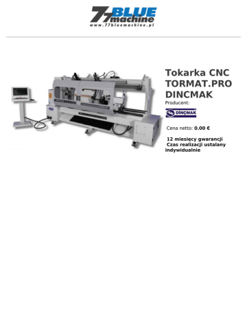 Tokarka CNC TORMAT.PRO DINCMAK Producent: Cena netto: 0.00 € 12 miesięcy gwarancji Czas realizacji ustalany indywidualnie SPECYFIKACJA PRODUKTU Tokarka CNC mod. TORMAT.PRO z 4 osiami sterowanymi numerycznie CNC oraz 2 nożami kopiującymi i 2 narzędziami frezującymi do wykonywania wszelakich operacji tokarskich, a także operacji frezowania na powierzchniach wykonanych elementów. Okular pozwala na obrabianie długich i wąskich elementów. Konstrukcja z 2 nożami zapewnia większa zdolność operacji toczenia. Maszyna wyposażona jest w hydrauliczny siłownik dla lepszego mocowania elementu obrabianego pomiędzy zaciskami. Pionowe i poziome narzędzia frezarskie mogą wykonać podłużne, jak i skrętne rowki na przetoczonych powierzchniach elementu. Maksymalna długość elementu Maksymalna średnica elementu Moc silnika toczącego Prędkość toczenia Moc silnika ruchomego wózka Moc silnika posuwu noża kopiującego Moc silnika posuwu narzędzi frezujących Moc silnika narzędzi frezujących (pionowy i poziomy) Zacisk elementu Ilość noży kopiujących Wymiary urządzenia Waga urządzenia 1500 mm 200 mm 5 kW SERWO 0 - 3.000 obr./min 0,8 kW SERWO 0,8 kW SERWO 0,8 kW SERWO 2,2 kW - 12.000 obr./min Hydrauliczny 2 200 x 380 x 200 cm 2750 kg