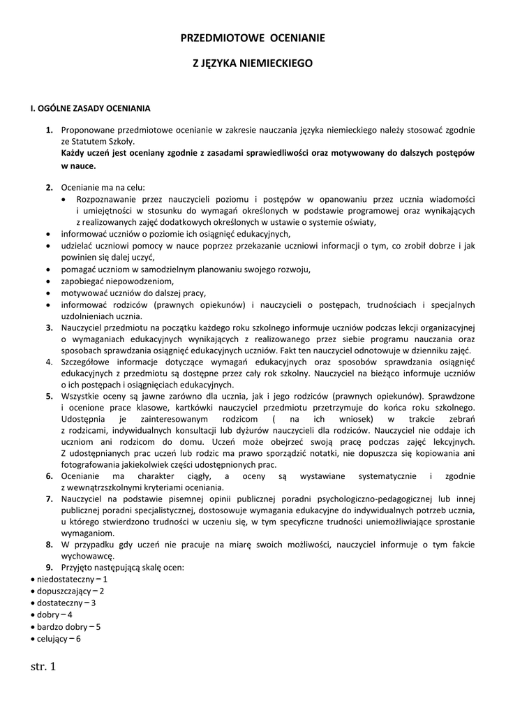 str. 1 PRZEDMIOTOWE OCENIANIE Z JĘZYKA NIEMIECKIEGO