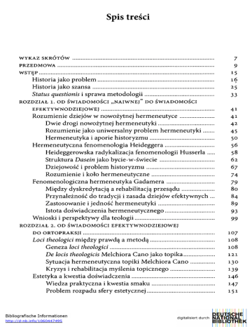 Spis treści WYKAZ SKRÓTÓW 7 PRZEDMOWA 9 WSTĘP Historia jako problem Historia jako szansa Status ąuestionis i sprawa metodologii 15 16 25 33 ROZDZIAŁ 1. OD ŚWIADOMOŚCI „NAIWNEj" DO ŚWIADOMOŚCI EFEKTYWNODZIEJOWEJ Rozumienie dziejów w nowożytnej hermeneutyce Dwie drogi nowożytnej hermeneutyki Rozumienie jako uniwersalny problem hermeneutyki Hermeneutyka i aporie historyzmu Hermeneutyczna fenomenologia Heideggera Heideggerowska radykalizacja fenomenologii Husserla Struktura Dasein jako bycie-w-świecie Dziejowość i problem historyzmu Rozumienie i koło hermeneutyczne Fenomenologiczna hermeneutyka Gadamera Między dyskredytacją a rehabilitacją przesądu Przynależność do tradycji i zasada dziejów efektywnych ... Zastosowanie i jedność hermeneutyki Istota doświadczenia hermeneutycznego Wnioski i perspektywy dla teologii 41 41 42 45 50 56 58 62 67 74 79 80 84 89 93 99 ROZDZIAŁ 2. OD ŚWIADOMOŚCI EFEKTYWNODZIEJOWEJ DO ORTOPRAKSJI 107 Loci theologici między prawdą a metodą Geneza loci theologici De locis theologicis Melchiora Cano jako topika Sytuacja hermeneutyczna topiki Melchiora Cano Kryzys i rehabilitacja myślenia topicznego Estetyka a kwestia doświadczenia Wiedza praktyczna i kwestia smaku Problem rozpadu sfery estetycznej 108 108 121 130 139 146 147 151 http://d-nb.info/1060447495 6 SPIS TREŚCI Przezwyciężenie rozpadu sfery estetycznej za pomocą pojęcia gry Kryzys teologii Ortopraksja a Urząd Nauczycielski Kościoła Teologia - scientia speculativa czy scientia practica Magisterium a teologia Loci theologici według Vaticanum II Loci theologici i ortopraksja ROZDZIAŁ 3. OD ORTOPRAKSJI DO ORTODOKSJI Lex orandi - lex credendi jako formuła hermeneutyczna teologii W poszukiwaniu treściowego „wypełnienia" ortopraksji ... Pojęcie liturgii Zmienne i niezmienne w liturgii Między lex orandi a lex credendi Świadomość efektywnodziejowa w medium języka Językowość doświadczenia hermeneutycznego Pojęcie „języka" w myśli zachodnioeuropejskiej Językowy charakter ludzkiego doświadczenia świata Doświadczenie z perspektywy języka Język jako medium doświadczenia teologicznego Symbol i alegoria jako postaci językowej metaforyki Dogmat a symbol wiary Alegoria w języku teologicznym Teologia z „wnętrza" języka ZAKOŃCZENIE 158 168 172 173 176 190 199 207 207 208 213 222 234 244 244 248 262 266 272 272 276 290 313 323 BIBLIOGRAFIA 329 SUMMARY 351 INDEKS OSOBOWY 357 INDEKS RZECZOWY 365