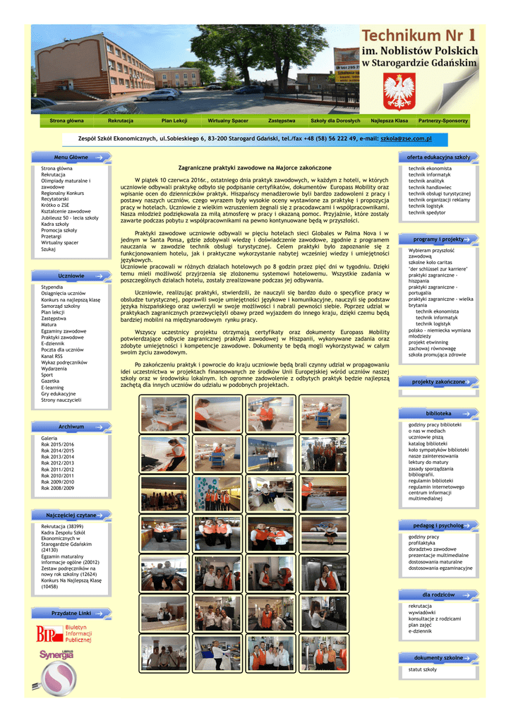 Strona główna Rekrutacja Plan Lekcji Wirtualny Spacer Zastępstwa Szkoły dla Dorosłych Najlepsza Klasa Partnerzy-Sponsorzy Zespół Szkół Ekonomicznych, ul.Sobieskiego 6, 83-200 Starogard Gdański, tel./fax +48 (58) 56 222 49, e-mail: [email protected] Menu Główne Strona główna Rekrutacja Olimpiady maturalne i zawodowe Regionalny Konkurs Recytatorski Krótko o ZSE Kształcenie zawodowe Jubileusz 50 - lecia szkoły Kadra szkoły Promocja szkoły Przetargi Wirtualny spacer Szukaj Uczniowie Stypendia Osiągnięcia uczniów Konkurs na najlepszą klasę Samorząd szkolny Plan lekcji Zastępstwa Matura Egzaminy zawodowe Praktyki zawodowe E-dziennik Poczta dla uczniów Kanał RSS Wykaz podręczników Wydarzenia Sport Gazetka E-learning Gry edukacyjne Strony nauczycieli oferta edukacyjna szkoły Zagraniczne praktyki zawodowe na Majorce zakończone W piątek 10 czerwca 2016r., ostatniego dnia praktyk zawodowych, w każdym z hoteli, w których uczniowie odbywali praktykę odbyło się podpisanie certyfikatów, dokumentów Europass Mobility oraz wpisanie ocen do dzienniczków praktyk. Hiszpańscy menadżerowie byli bardzo zadowoleni z pracy i postawy naszych uczniów, czego wyrazem były wysokie oceny wystawione za praktykę i propozycja pracy w hotelach. Uczniowie z wielkim wzruszeniem żegnali się z pracodawcami i współpracownikami. Nasza młodzież podziękowała za miłą atmosferę w pracy i okazaną pomoc. Przyjaźnie, które zostały zawarte podczas pobytu z współpracownikami na pewno kontynuowane będą w przyszłości. Praktyki zawodowe uczniowie odbywali w pięciu hotelach sieci Globales w Palma Nova i w jednym w Santa Ponsa, gdzie zdobywali wiedzę i doświadczenie zawodowe, zgodnie z programem nauczania w zawodzie technik obsługi turystycznej. Celem praktyki było zapoznanie się z funkcjonowaniem hotelu, jak i praktyczne wykorzystanie nabytej wcześniej wiedzy i umiejętności językowych. Uczniowie pracowali w różnych działach hotelowych po 8 godzin przez pięć dni w tygodniu. Dzięki temu mieli możliwość przyjrzenia się złożonemu systemowi hotelowemu. Wszystkie zadania w poszczególnych działach hotelu, zostały zrealizowane podczas jej odbywania. Uczniowie, realizując praktyki, stwierdzili, że nauczyli się bardzo dużo o specyfice pracy w obsłudze turystycznej, poprawili swoje umiejętności językowe i komunikacyjne, nauczyli się podstaw języka hiszpańskiego oraz uwierzyli w swoje możliwości i nabrali pewności siebie. Poprzez udział w praktykach zagranicznych przezwyciężyli obawy przed wyjazdem do innego kraju, dzięki czemu będą bardziej mobilni na międzynarodowym rynku pracy. Wszyscy uczestnicy projektu otrzymają certyfikaty oraz dokumenty Europass Mobility potwierdzające odbycie zagranicznej praktyki zawodowej w Hiszpanii, wykonywane zadania oraz zdobyte umiejętności i kompetencje zawodowe. Dokumenty te będą mogli wykorzystywać w całym swoim życiu zawodowym. Po zakończeniu praktyk i powrocie do kraju uczniowie będą brali czynny udział w propagowaniu idei uczestnictwa w projektach finansowanych ze środków Unii Europejskiej wśród uczniów naszej szkoły oraz w środowisku lokalnym. Ich ogromne zadowolenie z odbytych praktyk będzie najlepszą zachętą dla innych uczniów do udziału w podobnych projektach. technik technik technik technik technik technik technik technik ekonomista informatyk analityk handlowiec obsługi turystycznej organizacji reklamy logistyk spedytor programy i projekty Wybieram przyszłość zawodową szkolne koło caritas "der schlüssel zur karriere" praktyki zagraniczne hiszpania praktyki zagraniczne portugalia praktyki zagraniczne - wielka brytania technik ekonomista technik informatyk technik logistyk polsko - niemiecka wymiana młodzieży projekt etwinning zachowaj równowagę szkoła promująca zdrowie projekty zakończone biblioteka Archiwum Galeria Rok 2015/2016 Rok 2014/2015 Rok 2013/2014 Rok 2012/2013 Rok 2011/2012 Rok 2010/2011 Rok 2009/2010 Rok 2008/2009 godziny pracy biblioteki o nas w mediach uczniowie piszą katalog biblioteki koło sympatyków biblioteki nasze zainteresowania lektury do matury zasady sporządzania bibliografii. regulamin biblioteki regulamin internetowego centrum informacji multimedialnej Najczęściej czytane Rekrutacja (38399) Kadra Zespołu Szkół Ekonomicznych w Starogardzie Gdańskim (24130) Egzamin maturalny informacje ogólne (20012) Zestaw podręczników na nowy rok szkolny (12624) Konkurs Na Najlepszą Klasę (10458) pedagog i psycholog godziny pracy profilaktyka doradztwo zawodowe prezentacje multimedialne dostosowania maturalne dostosowania egzaminacyjne dla rodziców Przydatne Linki rekrutacja wywiadówki konsultacje z rodzicami plan zajęć e-dziennik dokumenty szkolne statut szkoły liczba odwiedzin odwiedziło nas: 2677579 imieniny Beaty, Juliana, Wincentego Do końca roku szkolnego pozostało 107 dni. przydatne linki europejski fundusz społeczny Tags WYDARZENIA PROJEKT KSZTAŁCENIE ZAWODOWE Zespół Szkół Ekonomicznych ul.Sobieskiego 6 83-200 Starogard Gdański tel./fax +48 (58) 56 222 49 e-mail: [email protected] Czas generowania strony: -0.154s. Zespół Szkół Ekonomicznych w Starogardzie G… 1200 polubienia Polub tę stronę Bądź pierwszą osobą wśród znajomych, która to polubi Udostępnij
