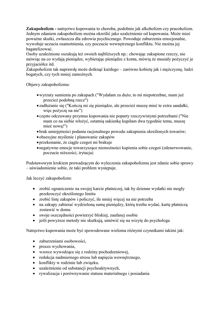 Jednym zdaniem zakupoholizm można określić jako uzależnienie od kupowania. Może mieć