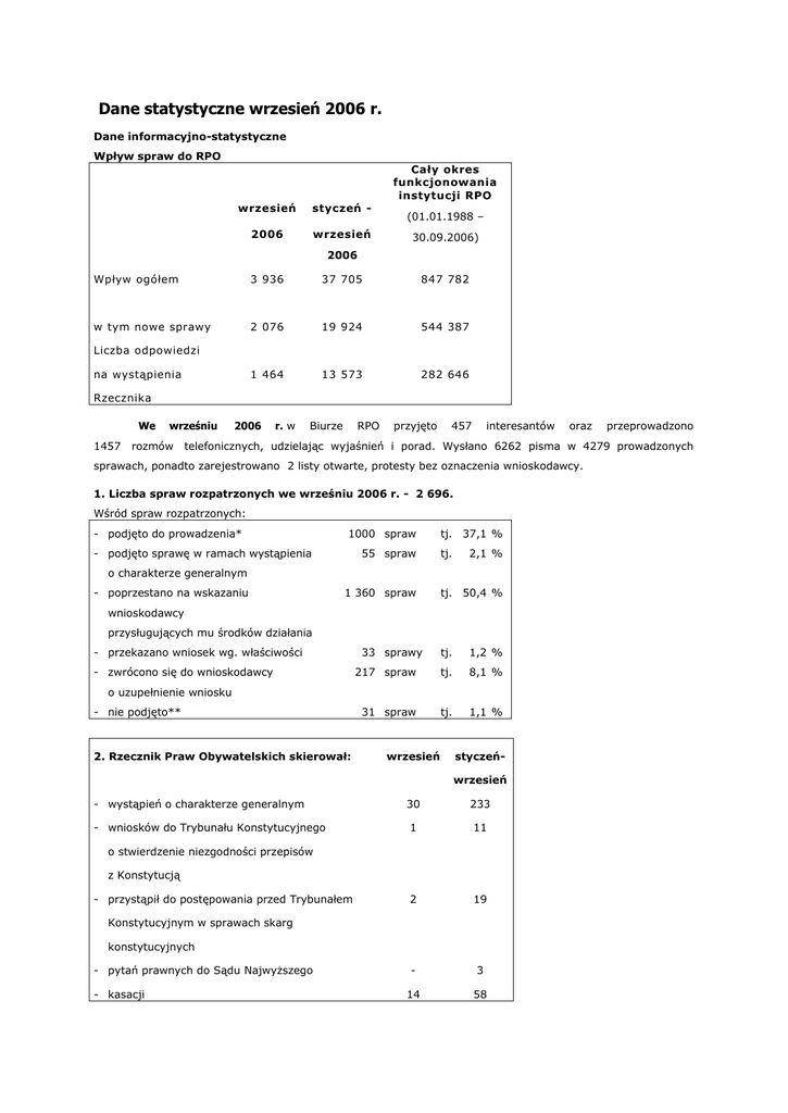 Dane statystyczne wrzesień 2006 r. - BIP RPO