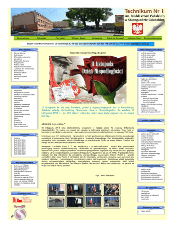 Strona główna Rekrutacja Plan Lekcji Wirtualny Spacer Zastępstwa Szkoły dla Dorosłych Najlepsza Klasa Partnerzy-Sponsorzy Zespół Szkół Ekonomicznych, ul.Sobieskiego 6, 83-200 Starogard Gdański, tel./fax +48 (58) 56 222 49, e-mail: [email protected] Menu Główne oferta edukacyjna szkoły Akademia z okazji Dnia Niepodległości Strona główna Rekrutacja Olimpiady maturalne i zawodowe Regionalny Konkurs Recytatorski Krótko o ZSE Kształcenie zawodowe Jubileusz 50 - lecia szkoły Kadra szkoły Promocja szkoły Przetargi Wirtualny spacer Szukaj Archiwum Galeria Rok 2015/2016 Rok 2014/2015 Rok 2013/2014 Rok 2012/2013 Rok 2011/2012 Rok 2010/2011 Rok 2009/2010 Rok 2008/2009 Najczęściej czytane Rekrutacja (38399) Kadra Zespołu Szkół Ekonomicznych w Starogardzie Gdańskim (24130) Egzamin maturalny informacje ogólne (20012) Zestaw podręczników na nowy rok szkolny (12624) Konkurs Na Najlepszą Klasę (10458) ekonomista informatyk analityk handlowiec obsługi turystycznej organizacji reklamy logistyk spedytor programy i projekty Uczniowie Stypendia Osiągnięcia uczniów Konkurs na najlepszą klasę Samorząd szkolny Plan lekcji Zastępstwa Matura Egzaminy zawodowe Praktyki zawodowe E-dziennik Poczta dla uczniów Kanał RSS Wykaz podręczników Wydarzenia Sport Gazetka E-learning Gry edukacyjne Strony nauczycieli technik technik technik technik technik technik technik technik 11 listopada to dla nas, Polaków, jedna z najważniejszych dat w kalendarzu. Właśnie wtedy obchodzimy Narodowe Święto Niepodległości. To właśnie 11 listopada 1918 r., po 123 latach zaborów, nasz kraj znów pojawił się na mapie Europy... Wybieram przyszłość zawodową szkolne koło caritas "der schlüssel zur karriere" praktyki zagraniczne hiszpania praktyki zagraniczne portugalia praktyki zagraniczne - wielka brytania technik ekonomista technik informatyk technik logistyk polsko - niemiecka wymiana młodzieży projekt etwinning zachowaj równowagę szkoła promująca zdrowie projekty zakończone „Ojczyzna moja wolna…” 10 listopada 2014 roku obchodziliśmy uroczyście w naszej szkole 96 rocznicę Odzyskania Niepodległości. To święto na zawsze się wpisało w kalendarz szkolnych obchodów. Przez lata w komunistycznej Polsce zabronione, z tym większym entuzjazmem obchodzone i czczone po 1989 roku. Uczniowie oraz ich opiekunowie zgromadzeni w hali sportowej po odśpiewaniu hymnu narodowego wysłuchali przemówienia Pana Wicedyrektora - Andrzeja Prabuckiego. Pan Wicedyrektor podkreślił szczególną rolę marszałek Józefa Piłsudskiego w przewróceniu Polski na mapę świata. Zwrócił też uwagę na potrzebę patriotycznego wychowania. Następnie uczniowie klasy 2 Ti we współpracy z przedstawicielami innych klas przedstawili poruszający montaż słowno-muzyczny. Uzmysłowił on zgromadzonym, że wolna Polska okupiona została krwią wielu naszych przodków. Uczniowie przypomnieli tragiczne losy naszej historii: poprzez rozbiory, utratę niepodległości, powstania listopadowe, styczniowe aż po rok 1918. W przedstawieniu znalazły się też odwołania do powstania warszawskiego, najnowszej historii Polski a przede wszystkim słów Jana Pawła II odnoszące się do obowiązku umiłowania ojczyzny. Apel poruszył grą młodych aktorów i wzruszającym wykonaniem pieśni patriotycznych. Dodatkowy efekt przyniosły obrazy przypominające najbardziej dramatyczne momenty naszej przeszłości. Apel został przygotowany pod kierunkiem Pani Danuty Głodek. Wzruszenia, który nam dostarczył, na pewno na długo zostaną w naszej pamięci. Opr. Anna Piekarska biblioteka godziny pracy biblioteki o nas w mediach uczniowie piszą katalog biblioteki koło sympatyków biblioteki nasze zainteresowania lektury do matury zasady sporządzania bibliografii. regulamin biblioteki regulamin internetowego centrum informacji multimedialnej pedagog i psycholog godziny pracy profilaktyka doradztwo zawodowe prezentacje multimedialne dostosowania maturalne dostosowania egzaminacyjne dla rodziców Przydatne Linki rekrutacja wywiadówki konsultacje z rodzicami plan zajęć e-dziennik dokumenty szkolne statut szkoły liczba odwiedzin odwiedziło nas: 2677582 imieniny Beaty, Juliana, Wincentego Do końca roku szkolnego pozostało 107 dni. przydatne linki europejski fundusz społeczny Tags WYDARZENIA NEWS Zespół Szkół Ekonomicznych ul.Sobieskiego 6 83-200 Starogard Gdański tel./fax +48 (58) 56 222 49 e-mail: [email protected] Czas generowania strony: 0.035s. Zespół Szkół Ekonomicznych w Starogardzie G… 1200 polubienia Polub tę stronę Bądź pierwszą osobą wśród znajomych, która to polubi Udostępnij