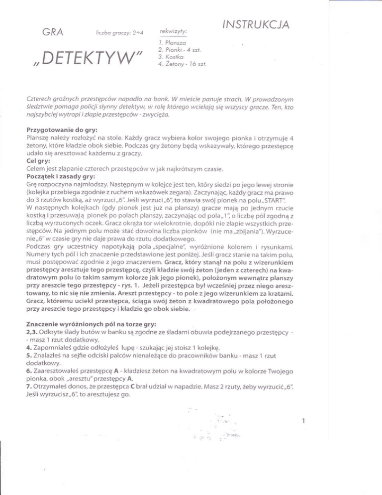 Gla końcŻy się gdyjeden z graczy detektywóW zatrŻyma czterech po9zUk]Wanych prŻe