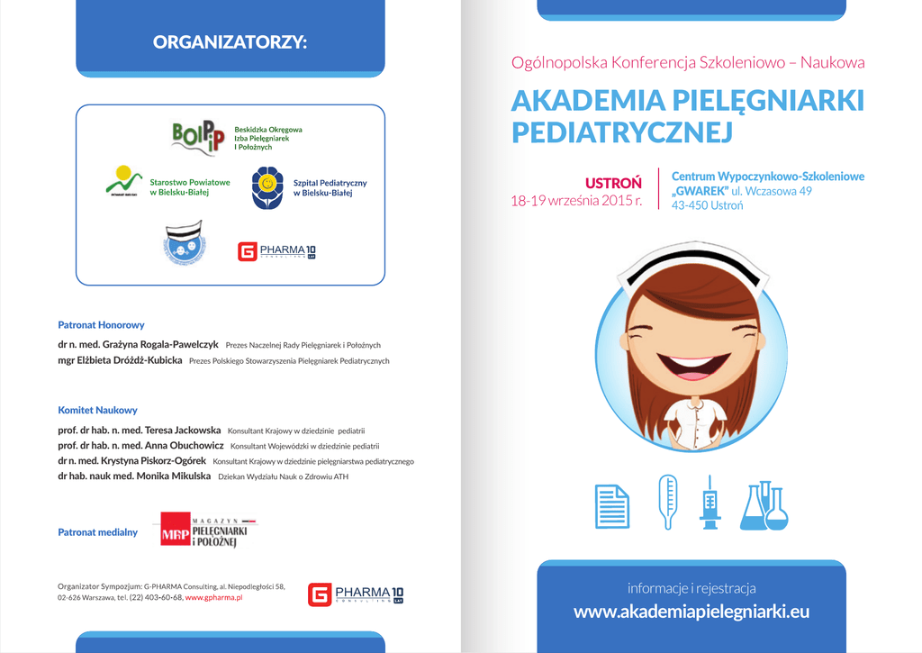 ORGANIZATORZY: Ogólnopolska Konferencja Szkoleniowo – Naukowa AKADEMIA PIELĘGNIARKI PEDIATRYCZNEJ USTROŃ 18-19 września 2015 r. Centrum Wypoczynkowo-Szkoleniowe „GWAREK” ul. Wczasowa 49 43-450 Ustroń Patronat Honorowy dr n. med. Grażyna Rogala-Pawelczyk mgr Elżbieta Dróżdż-Kubicka Prezes Naczelnej Rady Pielęgniarek i Położnych Prezes Polskiego Stowarzyszenia Pielęgniarek Pediatrycznych Komitet Naukowy prof. dr hab. n. med. Teresa Jackowska prof. dr hab. n. med. Anna Obuchowicz dr n. med. Krystyna Piskorz-Ogórek dr hab. nauk med. Monika Mikulska Konsultant Krajowy w dziedzinie pediatrii Konsultant Wojewódzki w dziedzinie pediatrii Konsultant Krajowy w dziedzinie pielęgniarstwa pediatrycznego Dziekan Wydziału Nauk o Zdrowiu ATH Patronat medialny informacje i rejestracja www.akademiapielegniarki.eu PROGRAM KONFERENCJI DZIEŃ I piątek 18.09.2015 r. DZIEŃ II sobota 19.09.2015 r. OPIEKA NAD DZIECKIEM Z UWZGLĘDNIENIEM WIEKU TRUDNE ROZMOWY, NAJTRUDNIEJSZE PRZYPADKI 13:00 – 14:00 Rejestracja 10:00 Rozpoczęcie konferencji Otwarcie konferencji i przywitanie gości Małgorzata Szwed – Przewodnicząca Okręgowej Rady BOIPiP Wystąpienia: Andrzej Płonka – Starosta Powiatu Bielskiego Ryszard Odrzywołek – Dyrektor Szpitala Pediatrycznego w Bielsku-Białej Wystąpienia zaproszonych gości 10:00 – 10:10 Prezentacja Firm 10:10 – 10:40 Żywienie dzieci z zaburzeniami różno układowymi – dr hab. med. Jarosław Kwiecień, specjalista gastrolog, Zabrze 14:00 – 14:20 14:20 – 14:40 Wykład inauguracyjny – dr n. med. Krystyna Piskorz-Ogórek – Konsultant Krajowy ds. Pielęgniarstwa Pediatrycznego Sesja I – Noworodek Sesja I – Prawo w zawodzie pielęgniarki 10:40 – 11:00 Odmowa leczenia u 16 latka 11:00 – 11:20 Przymus leczenia: jak go zastosować? 11:20 – 11:40 Recepty – sprawa pielęgniarki - dr Dariusz Mucha, adwokat, Adiunkt w Katedrze Prawa Karnego i Materialnego na Uniwersytecie Opolskim 14:40 – 15:00 Stany adaptacyjne noworodka – mgr Leokadia Gawlas-Kaczmarczyk – położna, Szkoła Rodzenia Skoczów 15:00 – 15:20 Wsparcie rodzin po utracie dziecka w doświadczeniach położnej – mgr Anna Stachulska – położna, Polskie Towarzystwo Położnych, Katowice 11:40 – 12:00 Karta leczenia bólu 12:00 – 12:20 Najczęstsze nowotwory u dzieci 15:20 – 15:40 Jak żywić zdrowe niemowlę w świetle aktualnych zaleceń – mgr inż. Joanna Neuhoff-Murawska – dietetyk współpracująca z IPCZ, ekspert programu 1000 pierwszych dni dla zdrowia 12:20 – 12:40 Hospicjum jako alternatywa leczenia – lek. med. Joanna Grabowska-Markowska, dyr. Hospicjum Cordis, Mysłowice 12:40 – 13:10 Przerwa Sesja II – Przedszkolak 15:40 – 16:00 Sesja II – Różne oblicza bólu Sesja III – Nastolatek Żywienie dzieci zdrowych w drugim i trzecim roku życia – mgr inż. Joanna Neuhoff-Murawska – dietetyk współpracująca z IPCZ, ekspert programu 1000 pierwszych dni dla zdrowia 13:10 – 13:30 Samookaleczenia – moda czy wołanie o pomoc 13:30 – 13:50 Młodzież trudna 16:00 – 16:20 Prezentacja Firm 13:50 – 14:10 16:20 – 16:40 Przerwa Uzależnienia u dzieci – ks. Józef Walusiak, założyciel Katolickiego Ośrodka Wychowania i Terapii Młodzieży NADZIEJA 16:40 – 17:00 Czyste przerywane samocewnikowanie dzieci – dr n.med. Agnieszka Pastuszka – Fundacja SPINA 14:10 – 14:30 Dziecko krzywdzone: Niebieska Karta – lek. med. Piotr Hartmann Sesja III – Ginekologia dziewczęca 14:30 – 15:10 Odporność wrodzona i nabyta u dzieci, pożegnania gości, zakończenie konferencji – prof. dr. hab. med. Teresa Jackowska, Konsultant Krajowy ds. Pediatrii 15:10 Lunch 17:00 – 17:20 Wczesne miesiączkowanie 17:20 – 17:40 Ciąża u nieletniej 17:40 – 18:00 Antykoncepcja – dr hab. J. Tomaszewski 20:00 Kolacja Sesja IV – Problemy pediatryczne w XXI wieku