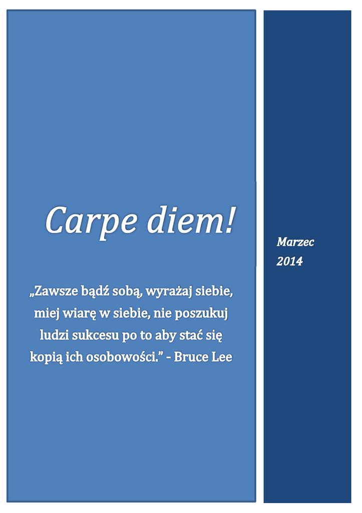 Kto? Po co? Dlaczego? Ametyst Ciężar porzucony, przeminął daleko gdzieś leży wśród ruin dawnych wspomnień, jak opowieść Pare chwil jak kilka wieków, teraz rutyną negatywy, pozytywy - na siebie runą Zjednają się w swój bezkres mnogości znaczeń i będą niż wczoraj brzmieć zupełnie inaczej, z nieprzespanej nocy powstanie oblicze blade, lecz zadziwiające i tajemnicze, dzień stracony zrodzi odległe perspektywy nada nieznaczące, choć liczące się wpływy wypite wino innego nabierze smaku barwe swą zmieni - doda wspomnieniom posmaku deszcz, który zmył myśli tedy - niegdyś wyrzutek dziś, bohater niszczący nienadeszły smutek Jednakże mimo różnicy tego widoku nie zmieni on dnia, nocy, wschodu ani zmroku niezmienne zostaję, co niezmienne musi być dopóki w naszej głowie - nie da sie pozbyć, słońce zawsze swój blask daje w dzień letni, księżyc na niebie króluje podczas swej pełni... Kacper Drzewiczewski Co warto obejrzeć? Tytuł: Sęp Główni aktorzy: Michał Żebrowski , Anna Przybylska , Daniel Olbrychski , Piotr Fronczewski Gatunek: Thriller Czas trwania: 2 godz. 13 min. Premiera: 11 stycznia 2013 Reżyser: Eugeniusz Korin Scenariusz: Eugeniusz Korin Muzyka: Archive Sęp jest to niewątpliwie długo oczekiwany polski thriller. Film już od pierwszych chwil budzi niepokój. Przede wszystkim jest pełen zagadek i napięcia. Widz nie jest w stanie domyślić się zakończenia filmu. Wykorzystana jest mroczna muzyka brytyjskiej grupy Archive, która nadaje się doskonale do tej produkcji. Świetnie napisany scenariusz i dopracowanie najmniejszych szczegółów docenili również krytycy filmowi. Sęp zbiera same dobre opinie i nawet najwybredniejsi widzowie zachwycają się tym filmem. Akcja filmu zaczyna się kiedy nagle, bez śladu, zaczynają znikać ludzie. Śledztwo trafia w ręce tytułowego Sępa (Michał Żebrowski) - policjanta, który rozpocznie niebezpieczną grę z przeciwnikiem wyprzedzającym go wciąż o krok. Odkryje świat, w którym ludzie prowadzą podwójne życie. Pierwszy raz, logiczne myślenie wpędzi go w pułapkę bez wyjścia. Polecam film każdemu kto lubi gdy dużo się dzieje i chce obejrzeć sensowny film, skłaniający do refleksji . Roksana Szwedek Kącik muzyczny! 13.02.2014 Poznań Arena Koncert zespołu DEEP PURPLE Czy 13 musi być dniem pechowym? Oj… chyba nie… Do południa cała Polska żyła złotym medalem kontuzjowanej Justyny Kowalczyk, natomiast po południu rzesze fanów starego dobrego hard rocka żyły wieczorną ucztą w poznańskiej Arenie. Ile lat nie było Deep Purple w Poznaniu? 18! Fani „Głębokiej purpury” doczekali się własnych dzieci, a większość nawet wnuków, które to… też już dorosły! Jak miło było spotykać fanów w tak bogatym przedziale wiekowym! Godzina 20:00 gasną światła, atmosfera się rozgrzewa, choć to dopiero zespół poprzedzający główną atrakcję wieczoru. Warszawska CHEMIA zagrała całkiem niezłego ciężkiego rocka! Bardzo ciekawe rozwiązania rytmiczne, aranżacyjne i brzmieniowe, no i co warto też podkreślić –bardzo dobry angielski wokalisty, co wcale nie jest takie oczywiste w powszechnym zalewie „anglosłowiańszczyzny”! Na chwilę jeszcze zapalają się światła, scenę zasłania olbrzymia biała roleta, na której widnieje dokładnie taki sam fioletowy napis jak na nowej płycie Deep ?urp!e ?! Now what. I znów gasną światła, ekran podświetlony, szał widowni… jeszcze kilka sekund… ekran opada i… są! Wielcy mistrzowie, legenda rocka - zaczynają swój show! Zdziwienie, że nie zaczynają od ogranego już „Highway Star”, nie zabrzmiała też na początku „Ognista kula”, czyli „Fireball”, ale zupełnie nowy utwór „Apres Vous”, motoryczny, ale nie tak agresywny jak wspomniane już klasyki. Ale jest to za co fani kochali Purpli – dialogi gitarowo-organowe! No i wokalista Ian Gillan w całkiem niezłej formie! Ale też nie oczekujmy już cudów, w końcu gość ma 69 lat! Nie oczekujmy cudów? Zaskoczenie! Jako drugi utwór super ciężki „Into The Fire”, a zaraz po nim kapitalny agresywny i dynamiczny „Hard Lovin’ Man” – oba z przesławnej płyty „Deep Purple In Rock” . Publiczność rozgrzana chwilę czeka… co teraz? Jest! Sam też na to czekałem! Cudowny utwór z nowej płyty „Vincent Price” – jak to rewelacyjnie brzmi, jak klarownie przy takiej głośności i jak wtłacza w podłogę – lepiej niż niejedna kapela doom-metalowa! A to te „dziadki” z Deep Purple! Nie sposób wymieniać już wszystkich utworów… perfekcyjnie zagrane, pełne szalonych improwizacji, a jednocześnie swobody… Są klasyki, jest nadzwyczaj dużo utworów z nowej bardzo udanej płyty! Jest „The Mule” dawno nie grany, ze wspaniałą solówką perkusyjną, jak za dawnych lat na genialnej płycie „Made In Japan”. Ian Paice siedzi za skromnym zestawem perkusyjnym jak przy restauracyjnym stoliku i wyczynia cuda! Jest utwór promujący w radio nową płytę „All The Time In The World” poświęcony pamięci zmarłego 2 lata temu organisty! Purple grają, a w tle zdjęcia nieodżałowanego Jon’a Lord’a! Wzruszający moment… Kolejny wzruszający moment koncertu, to solo organowe Don’a Airey’a poprzedzające słynny „Perfect Strangers”. Jaki to był popis wirtuozerii! W improwizację wplecione utwory Chopina i Hymn Polski! Niesamowite! Na koniec nie mogło być inaczej… „Smoke On The Water”! Publiczność szaleje… Są! Są bisy! Wydawałoby się, że już kondycyjnie wysiadają… Nic bardziej mylnego! Nie Deep Purple! To zespół, którego koncerty to prawdziwe misteria dla fanów! Taki ogień, taka energia, fenomenalne popisy gitarowe szalejącego Steve Morse’a – no cóż… On może, w końcu jest z całej purpurowej piątki najmłodszy – ma zaledwie 60 lat! Na zegarach dochodzi już 23, tłumy zadowolonych wielbicieli opuszczają Arenę… Bardzo udany wieczór