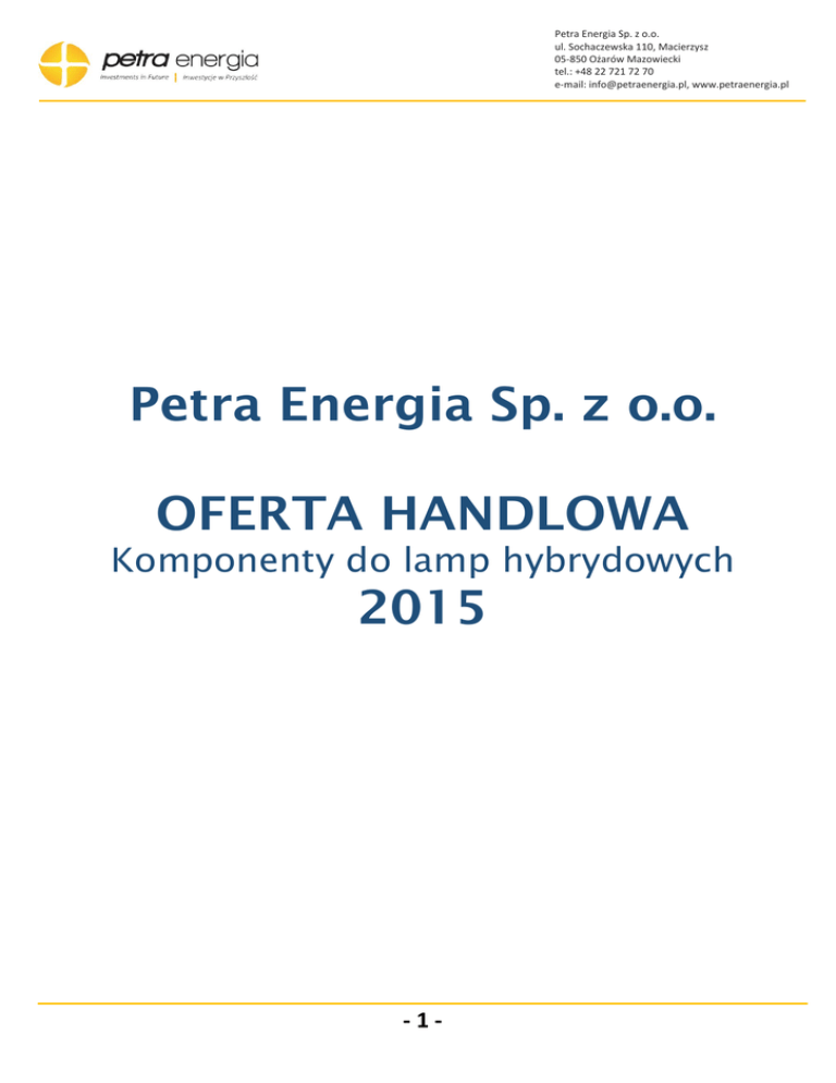 Petra Energia Sp. z oo OFERTA HANDLOWA 2015