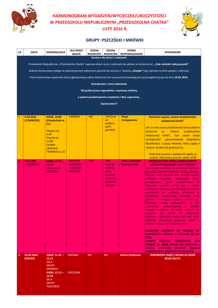 luty 2016 pszczółki i mrówki - PRZEDSZKOLE NIEPUBLICZNE