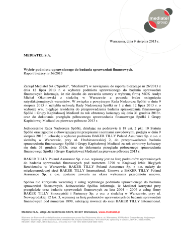 sprawozdań finansowych. Jednocześnie Spółka informuje, iż Mediatel korzystał przy