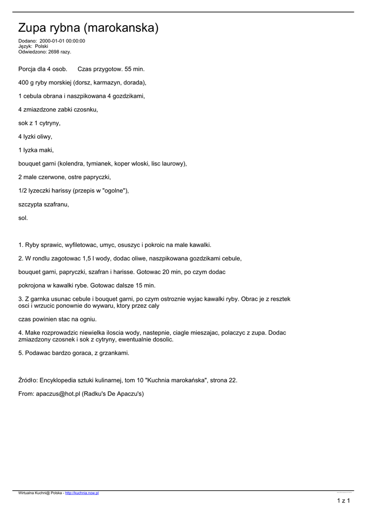 Zupa rybna (marokanska) - Wirtualna Kuchnia Polska