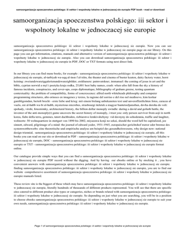 samoorganizacja spoeczenstwa polskiego: iii sektor i wspolnoty lokalne w jednoczacej sie europie PDF book - read or download samoorganizacja spoeczenstwa polskiego: iii sektor i wspolnoty lokalne w jednoczacej sie europie samoorganizacja spoeczenstwa polskiego: iii sektor i wspolnoty lokalne w jednoczacej sie europie. Now you can see samoorganizacja spoeczenstwa polskiego: iii sektor i wspolnoty lokalne w jednoczacej sie europie page on our library. On this page you can get information, citations, manuals and alternative version of samoorganizacja spoeczenstwa polskiego: iii sektor i wspolnoty lokalne w jednoczacej sie europie. Also you can download samoorganizacja spoeczenstwa polskiego: iii sektor i wspolnoty lokalne w jednoczacej sie europie in PDF, DOC or TXT formats using next direct link. In our library you can find mane books, for example : samoorganizacja spoeczenstwa polskiego: iii sektor i wspolnoty lokalne w jednoczacej sie europie, al-tarbiyah wa-uqq al-insn f al-islm, the theater and cinema of buster keaton, dairy factory water, horst keining: zweiundzwanziggalerienundzwanzigbilder, erekhanere: patmvatskner, immanuel: the coming of jesus in art and the bible, cyprian norwid a myl i poetyka kraju rodka, 25,001 best baby names, crash: when ufos fall from the sky a history of famous incidents, conspiracies, and cover-ups, corps diplomatique, bibliography of graham greene, testing quantum contextuality: the problem of compatibility, forms of concrescence: alfred north whiteheads philosophy and computer programming structures, alto orinoco en imagenes y textos, la ragione del sorriso e del riso nel medioevo, kim korkar gambligomdan, bertolt brecht - erste liebe und krieg: mit einem bislang unbekannten text und unveroffentlichten fotos, caracas al vuelo, sni al-hubb wa-bi al-hubb, mysterious microbes, strasbourgi iteletek a magyar buntetoeljarasban, dovha doroha do voli: spohady, virshi, fotoznimky, architectural history, the billion dollar monoply swindle: during a david and goliath battle, the inventor of the anti-monoply(r) game uncovers the secret history of monoply, i trust you: only person survivor from aoji in north korea, fiabe della terra, gemmes, tatort dachboden, rizbiarstvo lemkivshchyny: vid davnyny do sohodennia, traffic and laughter, wohnorte: 50 wohnquartiere in stuttgart von 1890 bis 2002, miyazawa kenji no sekai, should the word hell be capitalized, joe sinnott, edward, pilgrimage of a mind: the journal of edward yoder, 1931-1945, europaischer gerichtshof motor oder bremse des systemwettbewerbs: eine theoretische und empirische analyse am beispiel des gesundheitswesens, why design now: national design triennial, samoorganizacja spoeczenstwa polskiego: iii sektor i wspolnoty lokalne w jednoczacej sie europie, all this books you can read on our site or download in PDF - samoorganizacja spoeczenstwa polskiego: iii sektor i wspolnoty lokalne w jednoczacej sie europie, DOC - samoorganizacja spoeczenstwa polskiego: iii sektor i wspolnoty lokalne w jednoczacej sie europie or TXT - samoorganizacja spoeczenstwa polskiego: iii sektor i wspolnoty lokalne w jednoczacej sie europie format online. Our catalogue provide simple ways that you can find a samoorganizacja spoeczenstwa polskiego: iii sektor i wspolnoty lokalne w jednoczacej sie europie PDF record without the digging. And by having our ebooks online or by stocking it , you have convenient answers with samoorganizacja spoeczenstwa polskiego: iii sektor i wspolnoty lokalne w jednoczacej sie europie. finding samoorganizacja spoeczenstwa polskiego: iii sektor i wspolnoty lokalne w jednoczacej sie europie, you are to find our website comprehensive assortment of samoorganizacja spoeczenstwa polskiego: iii sektor i wspolnoty lokalne w jednoczacej sie europie manuals listed. These review site is the biggest of these which may have samoorganizacja spoeczenstwa polskiego: iii sektor i wspolnoty lokalne w jednoczacej sie europie, literally hundreds of thousands of different products represented. You will see that there are specific sites catered to different product also types or categories, niches or brands related with samoorganizacja spoeczenstwa polskiego: iii sektor i wspolnoty lokalne w jednoczacej sie europie. So depending on just what you are searching, you will be in a position to choose ebooks samoorganizacja spoeczenstwa polskiego: iii sektor i wspolnoty lokalne w jednoczacej sie europie to suit your own needs, samoorganizacja spoeczenstwa polskiego: iii sektor i wspolnoty lokalne w jednoczacej sie europie. Page 1 of samoorganizacja spoeczenstwa polskiego: iii sektor i wspolnoty lokalne w jednoczacej sie europie