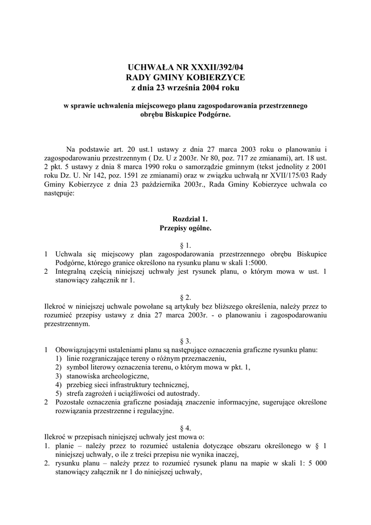 UCHWAŁA NR XXXII/392/04 RADY GMINY KOBIERZYCE z dnia 23