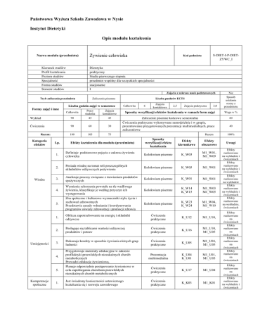 Państwowa WyŜsza Szkoła Zawodowa w Nysie Instytut Dietetyki